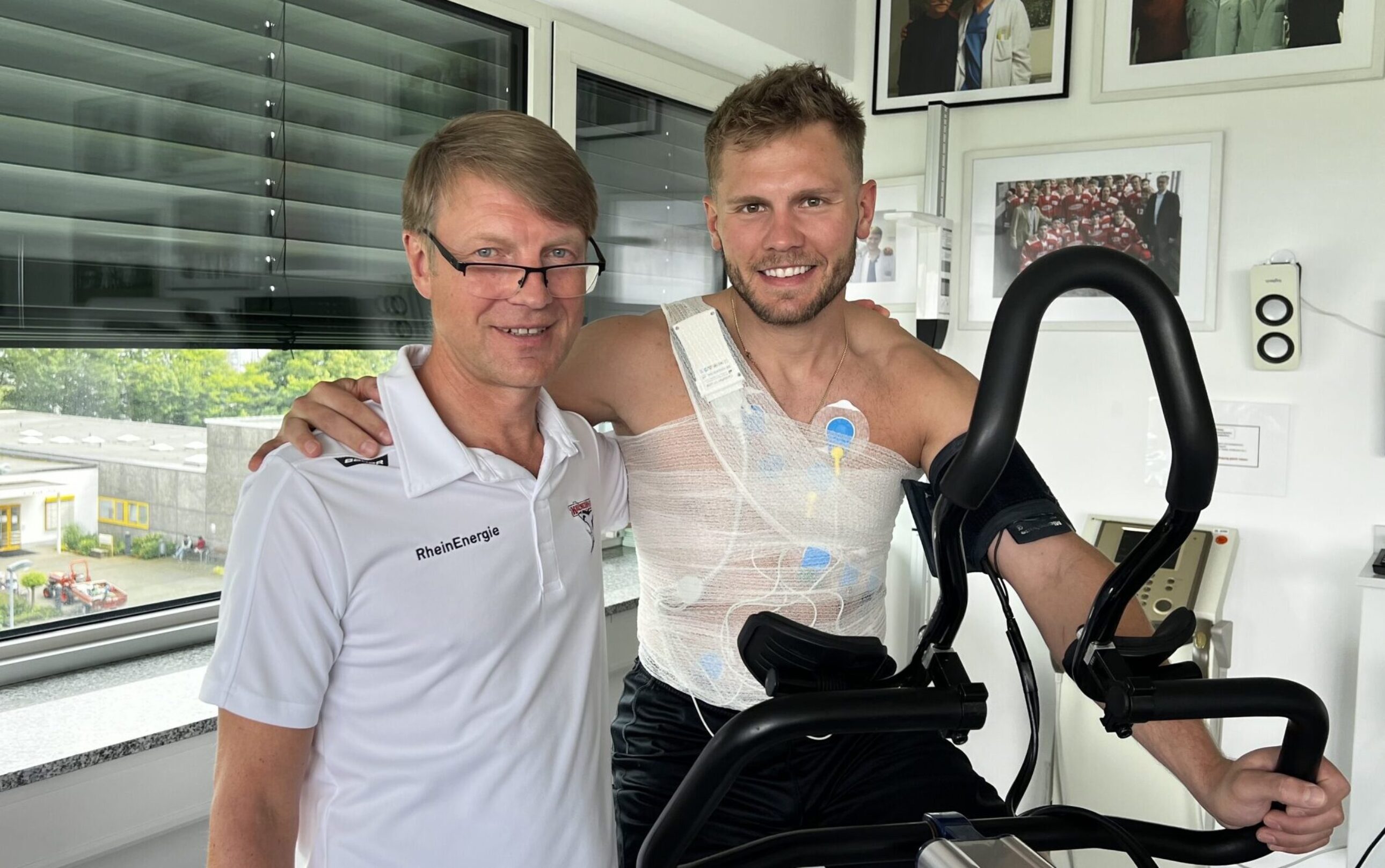 Während der Vorbereitung auf eine Eishockey-Saison stehen für unsere Profis einige Termine an. Neben dem „klassischen“ Kraft- und Eistraining gibt es auch ab und an wichtige gesundheitliche Untersuchungen. So besuchten unsere Jungs in den vergangenen Tagen die Kardiologie-Station im Krankenhaus Porz am Rhein. Dort wurden sie von unseren Mannschaftsärzten Prof. Dr. Marc Horlitz und Dr. Eduard Gorr einem Cardio-Check unterzogen.