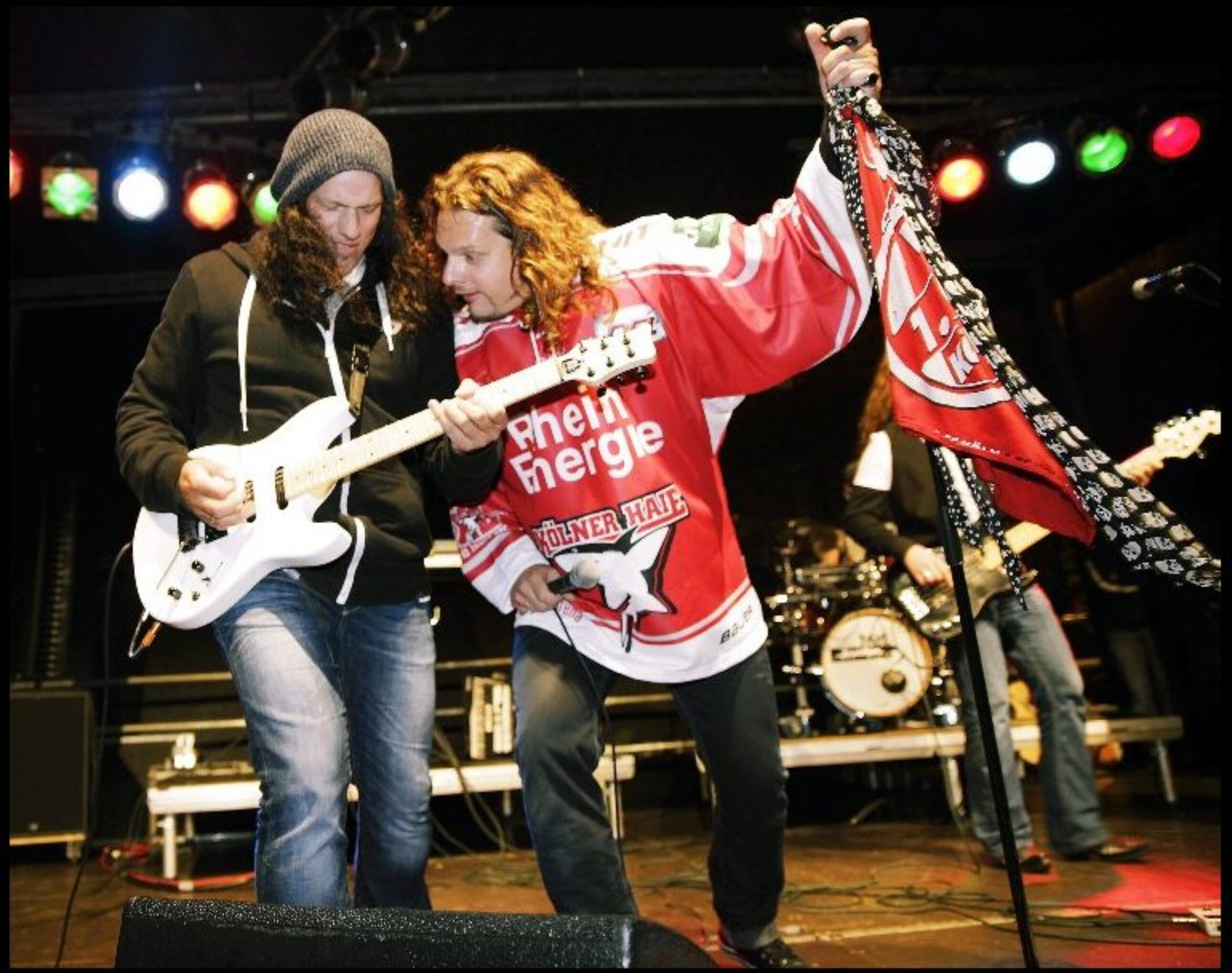 „Das ist ja richtiges Festival-Wetter“, trotzte KASALLA-Sänger Bastian Wind und Nieselregen. Schnell war klar: Von den ungemütlichen Umständen ließen sich die Haie-Fans ihre Laune nicht verderben. Bei der Saisoneröffnungsfeier am Freitagabend am Haie-Zentrum in Köln-Deutz herrschte gute und ausgelassene Stimmung! KASALLA und HANAK (Bild) heizten derart gut ein, dass die herbstlichen Temperaturen schnell vergessen waren. Die Kampfansagen der Spieler auf der Fest-Bühne wärmten zusätzlich die Gemüter. Die Botschaft dieses Abends war klar: „Wir wollen oben angreifen!“