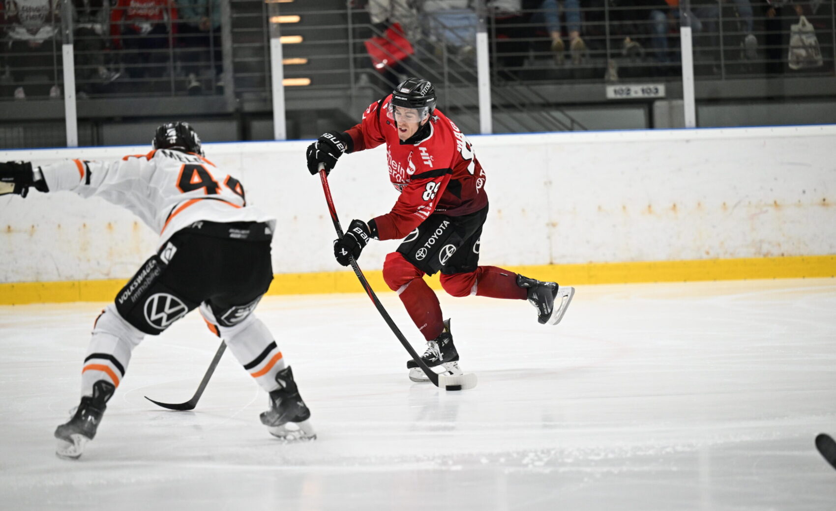 Im kurz darauffolgenden Powerplay kam unsere Mannschaft zu weiteren guten Möglichkeiten, doch Nate Schnarr, der von Gregor MacLeod gut in Szene gesetzt wurde, scheiterte mit seinem Abschluss nur knapp. Kurze Zeit später belohnten wir uns dann aber für eine gute Anfangsphase. Über Maxi Kammerer und Dominik Bokk landete die Scheibe bei Ryan MacInnis, der mittig zum Abschluss kam und Weitzmann mit seinem One-Timer überwand (5.), 1:0!