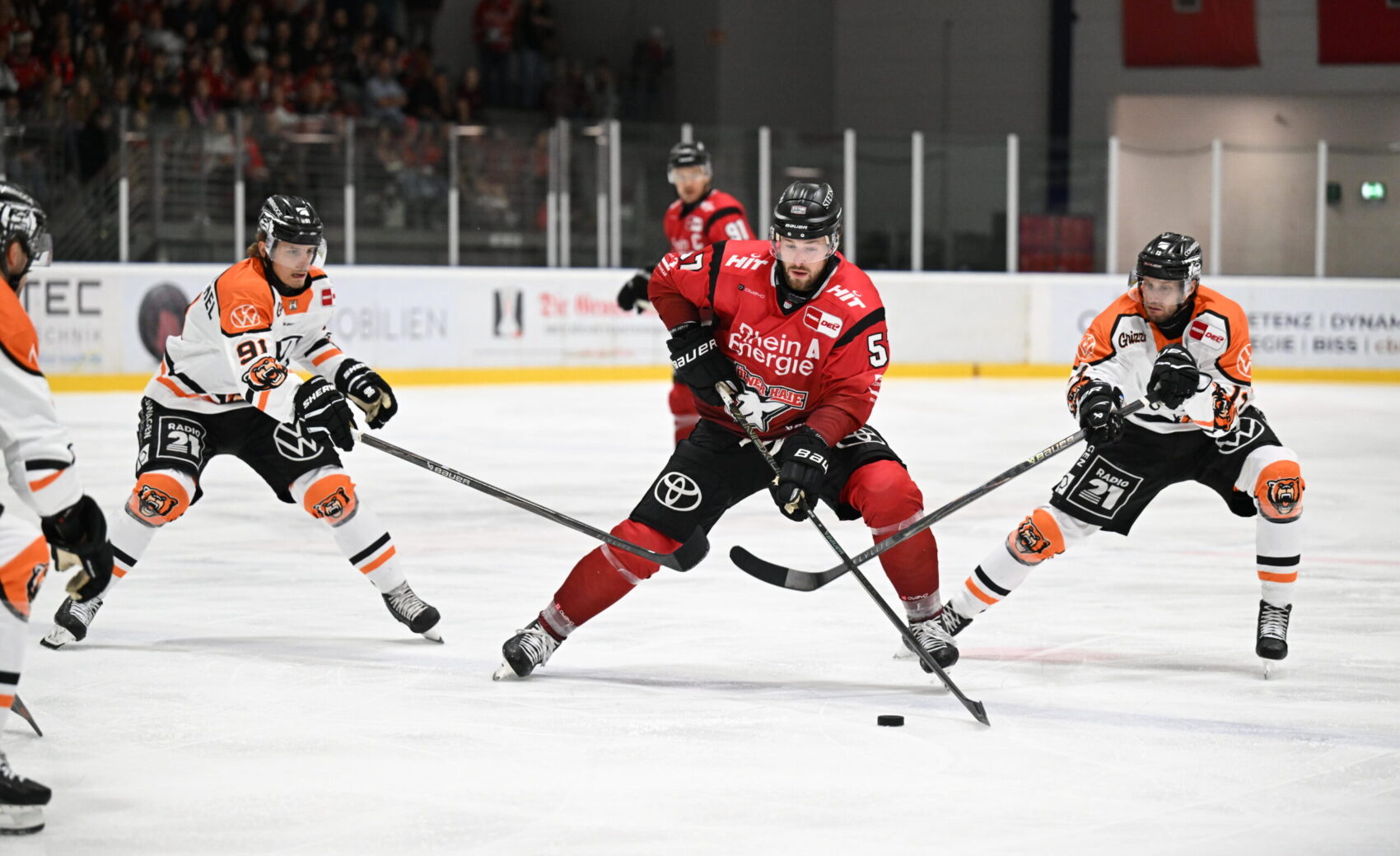 In einem unterhaltsamen Spiel setzen wir uns mit 4:3 gegen die bis dato ungeschlagenen Grizzlys aus Wolfsburg durch. Vor heimischen Publikum im Haie-Zentrum erzielen wir alle Tore in Überzahl – im letzten Drittel drehen wir das Spiel von 1:3 auf 4:3 und beweisen damit Moral. Ryan MacInnis (2x), Patrick Russell und Gregor MacLeod sorgen mit ihren Treffern für den Sieg im letzten Heim-Test der diesjährigen Vorbereitung. Wir haben den Spielbericht zur Partie.