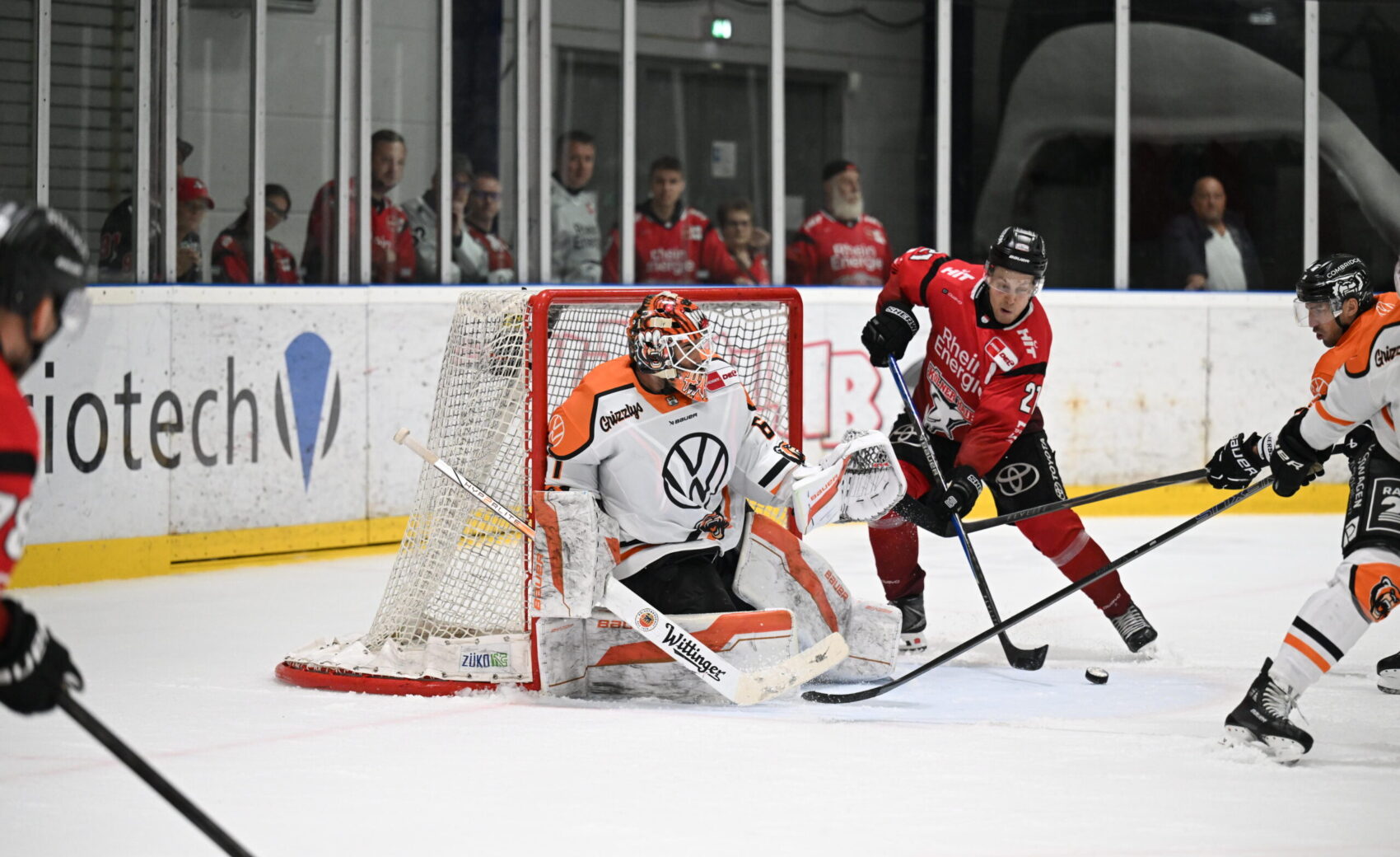 Gegen den Konkurrenten aus der PENNY DEL kamen wir im vorletzten Testspiel der Vorbereitung gut in die Partie und hatten nach nicht einmal 60 Sekunden die Führung auf der Kelle. Parker Tuomie bekam im Slot von hinter dem Tor einen feinen Pass, fand dann im ehemaligen KEC-Goalie Hannibal Weitzmann aber seinen Meister.