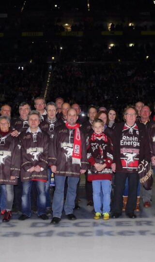 Der Rahmen hätte kaum würdiger sein können. Vor ausverkauftem Haus zum Derby gegen die DEG eröffneten die Haie am Freitagabend mit einem feierlichen Zeremoniell den „Club der Goldenen Haie“. Als Ehrenmitglieder wurden die treuesten der Treuen Haie-Fans auf dem Eis geehrt. Fans, die seit mindestens 25 Jahren eine Dauerkarte besitzen, durften unter groem Applaus der über 18.500 Zuschauer im Scheinwerferlicht durchs Hai-Maul über den roten Teppich zur Ehrung schreiten und bekamen von Haie-Geschäftsführer Peter Schönberger, KEC-Legende Udo Kieling sowie Haie-Gründungsvater Detlef Langemann ihr schwarz-goldenes Ehrentrikot überreicht. Auf diese Weise wollen die Haie DANKE sagen für groartige Treue und Loyalität. Am längsten schlägt das Haie-Herz bisher bei Jürgen Fahlbusch, Sabine Schauf, Wolfgang Schauf, Heinz Zimmermann und Hans-Peter Kelz, die seit unglaublichen 37 Jahren dabei sind.