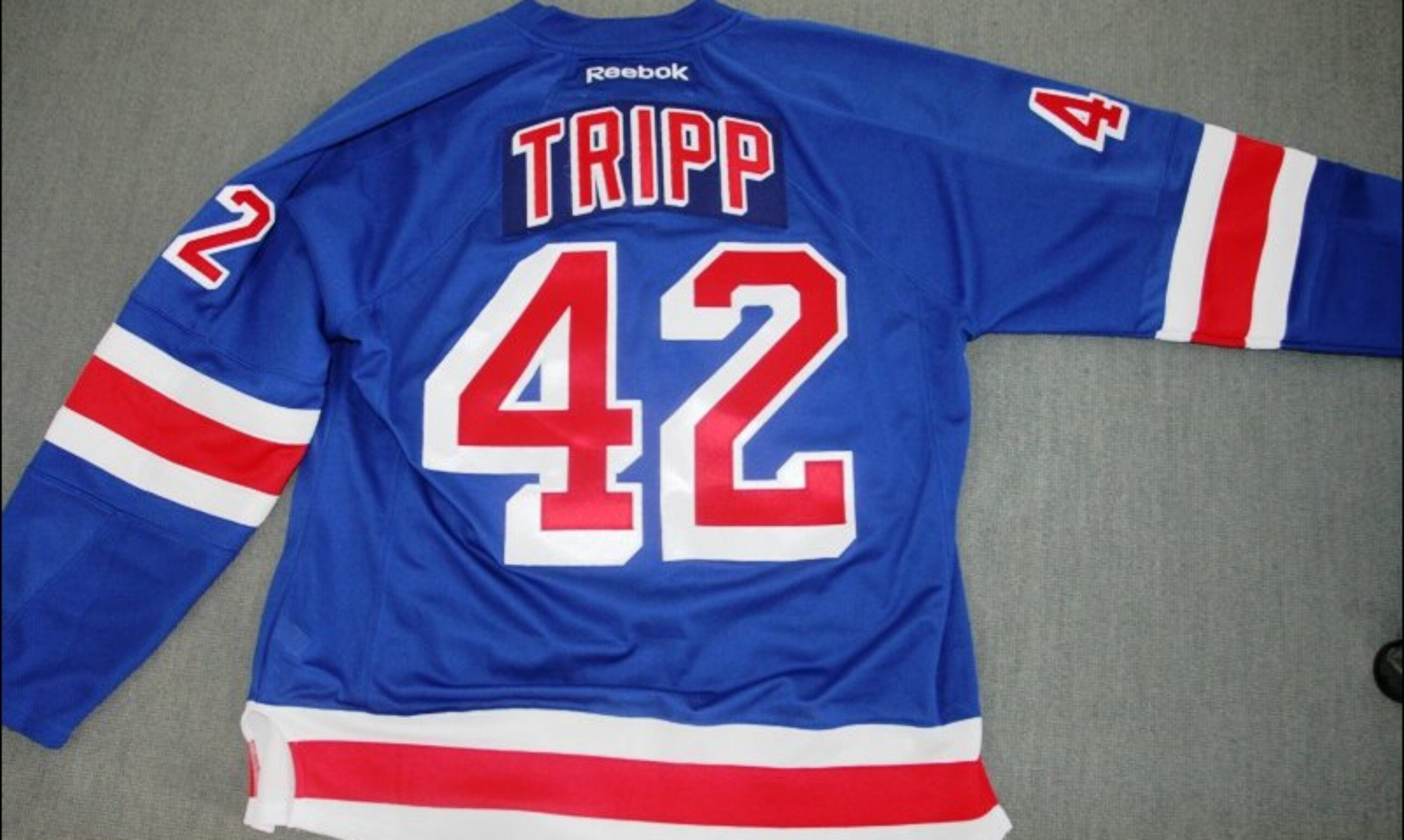 Für das Haie-Heimspiel gegen Mannheim hat Haie-Kapitän John Tripp ein Authentic Trikot der Rangers aus seiner Zeit in New York organisiert. Dieses besondere Jersey kann jeder Besucher gewinnen. Einfach ein Los der „Tripp-Charity“ kaufen (€ 2,- u.a. am Info-Counter-Nord) und Daumen drücken. Das Geld kommt krebskranken Kindern zugute!