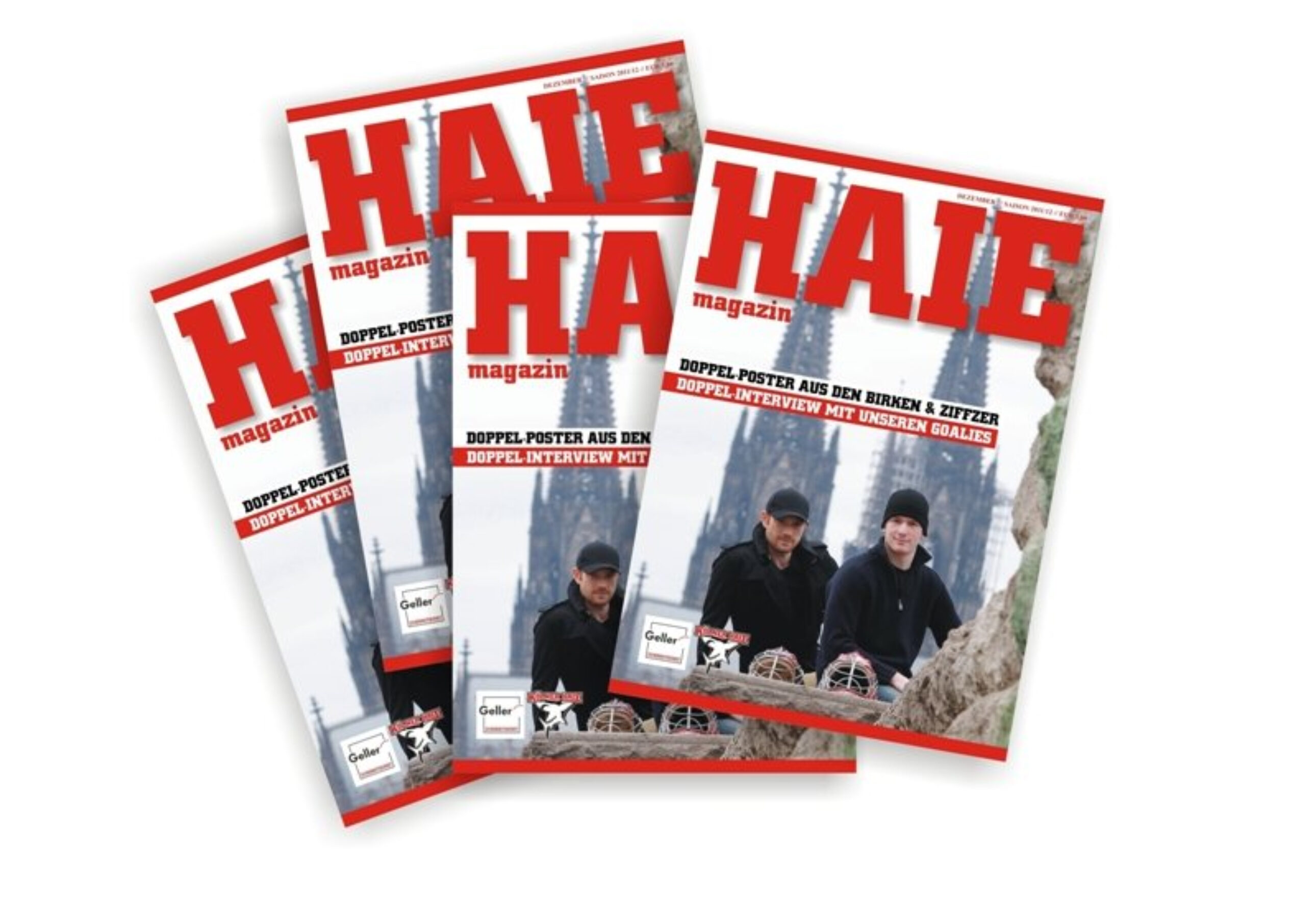 Das Haie-Magazin ist bei Heimspielen des KEC in der LANXESS arena und im Haie-Shop für € 3,- erhältlich.