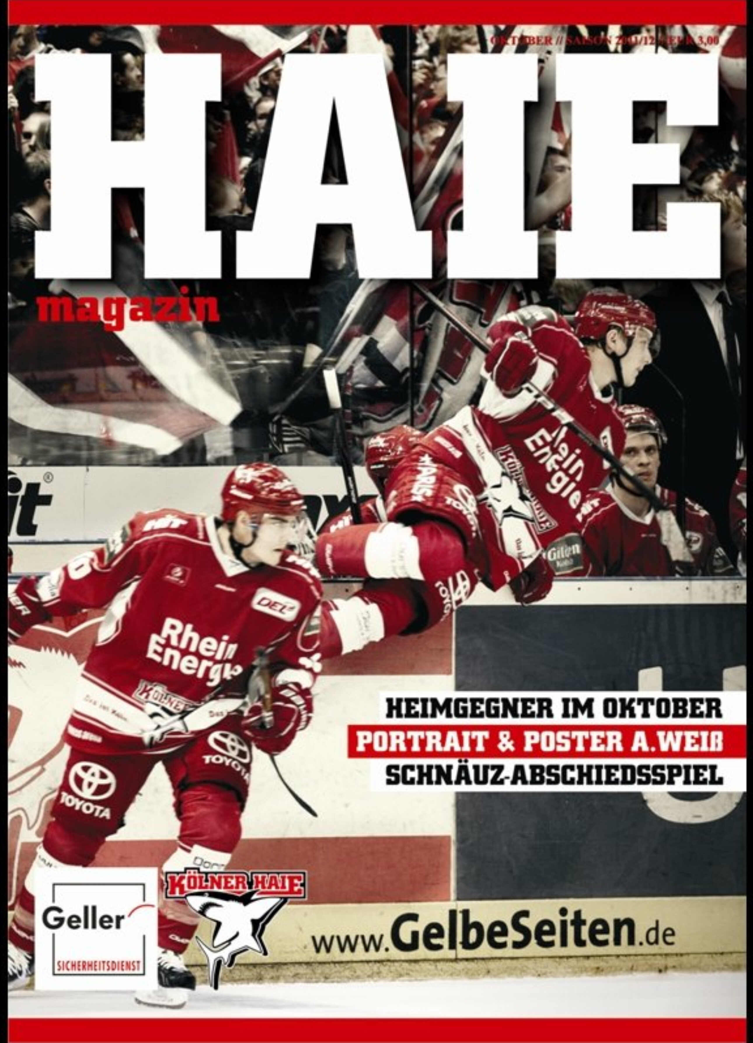 Das neue Haie-Magazin erscheint pünktlich zum ersten Oktober-Heimspiel am Sonntag. Das KEC-Heft ist in der Arena und im Haie-Shop in Köln-Deutz für 3,- erhältlich.