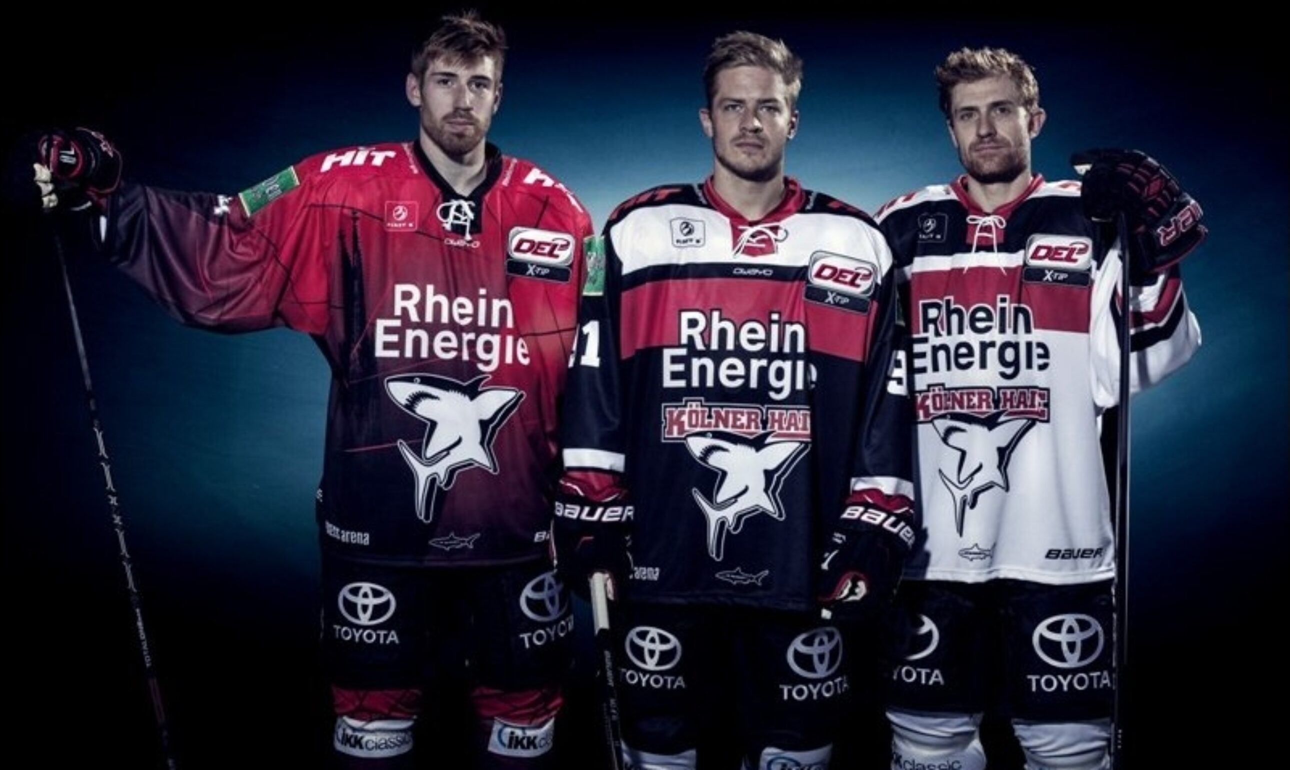„Das ist meiner Meinung nach das schönste Trikot, in dem ich bisher bei den Haien gespielt habe.“ Moritz Müller kam geradezu ins Schwärmen, als er die neue Haie-Kluft erstmals zu sehen bekam. Beim Fotoshooting für das KEC-Trikot 2014/2015 war auch Alexander Sulzers Meinung eindeutig: „Geiles Teil!“ Müller, Sulzer und Björn Krupp waren die Models bei der diesjährigen Trikot-Präsentation.