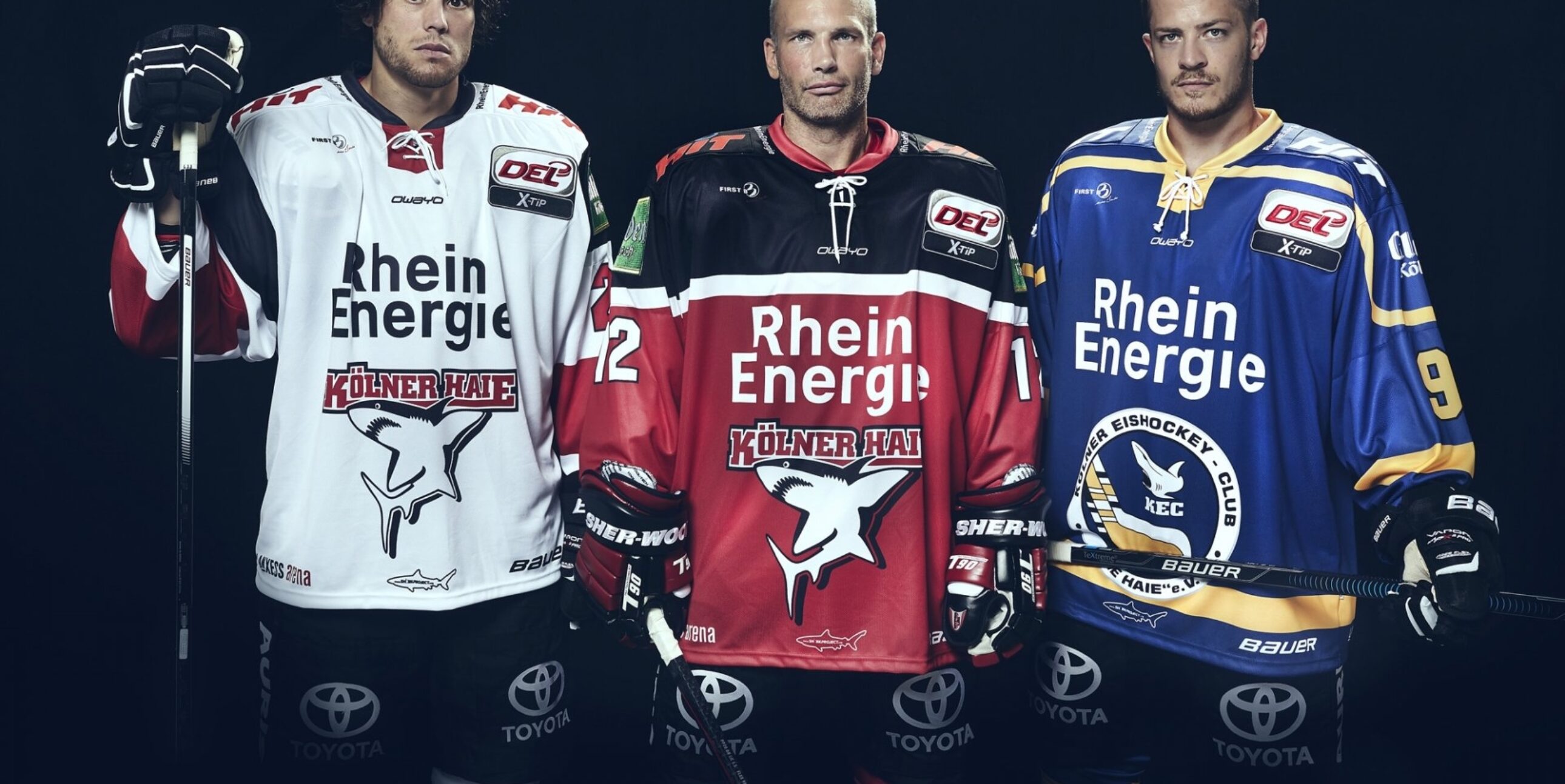 Die Kölner Haie präsentieren die Trikots für die Saison 2015/16! Und die Haie-Profis sind schon mal begeistert: „Es ist schön, wieder in rot zu spielen. Aufgrund seiner Schlichtheit, für mich ein überragendes Design“, sagt KEC-Legende Mirko Lüdemann. „Ich freue mich schon darauf, in diesen Trikots aufs Eis einzulaufen. Die Idee, mit dem blauen Ausweichtrikot an die Tradition des KEC zu erinnern, finde ich super. Ich werde mir eines davon kaufen“, lacht Ryan Jones. Und auch Haie-Kapitän Moritz Müller ist begeistert: „Ich habe zwar schon im letzten Jahr gesagt, dass es die schönsten Trikots sind, in denen ich bislang gespielt habe, doch ich muss mich wiederholen. Alle drei Designs gefallen mir wieder super! Das sieht nach den Kölner Haien aus! Die Saison kann losgehen.“