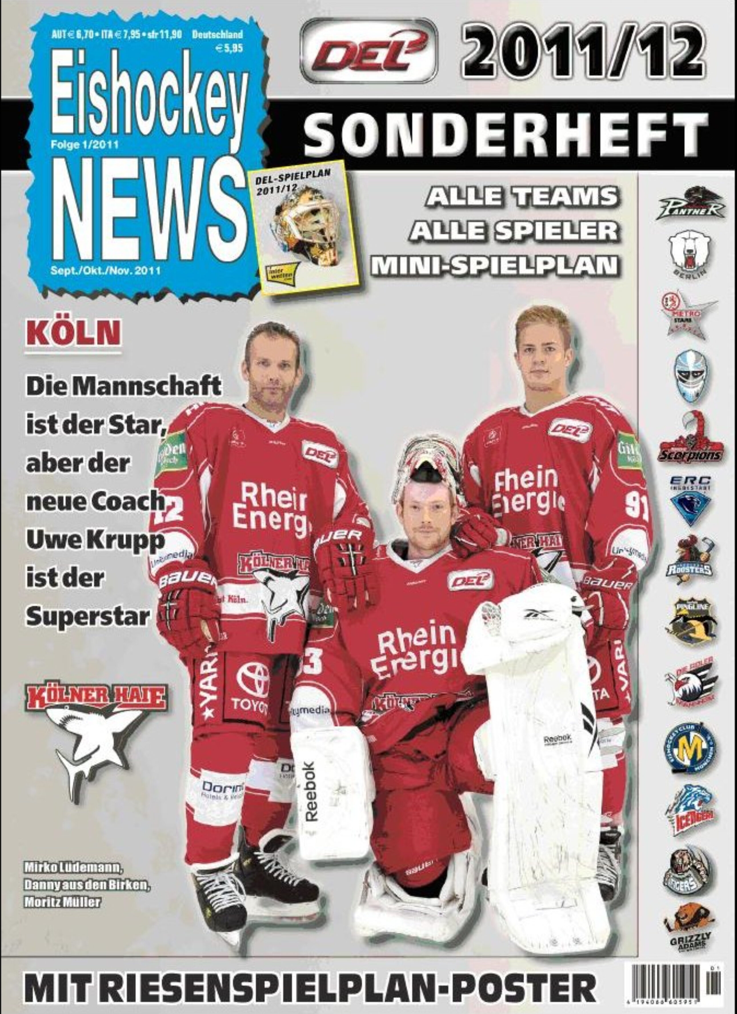 Das DEL-Sonderheft 11/12 des Fachverlages „Eishockey NEWS“ ist ab Freitag (26. August) zum Preis von 5.95 Euro überall im ausgesuchten Zeitschriftenhandel erhältlich.