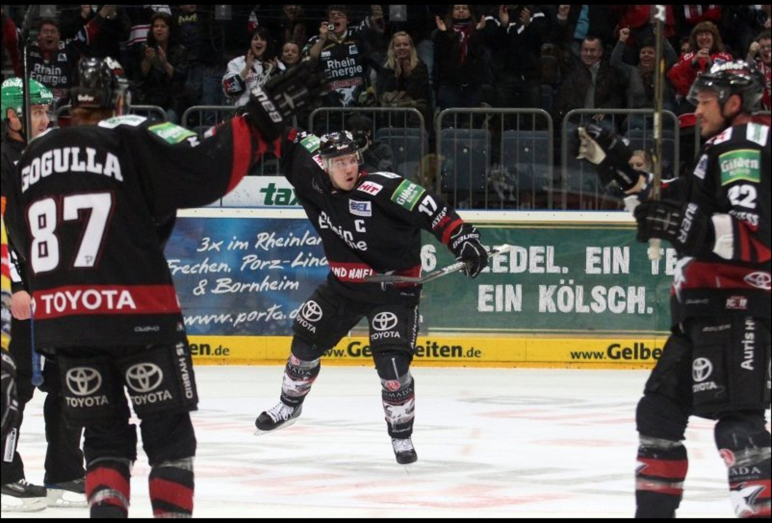 So ging es ins Penaltyschieen: Zunächst brachte Kreutzer die Gäste in Führung, Johan Akerman glich per Schlagschuss (!) aus. Im vierten Durchgang schaffte Ullmann die Führung für den KEC. Als schlielich Kreutzer vergab, kannte der Jubel in der Arena keine Grenzen mehr! Der Kölner Derby-Sieg war perfekt!