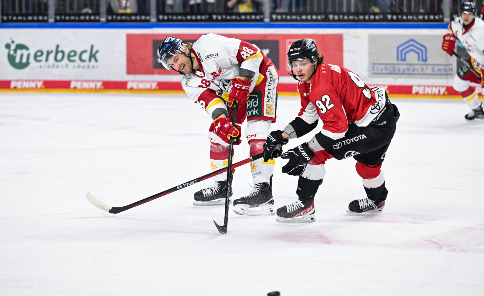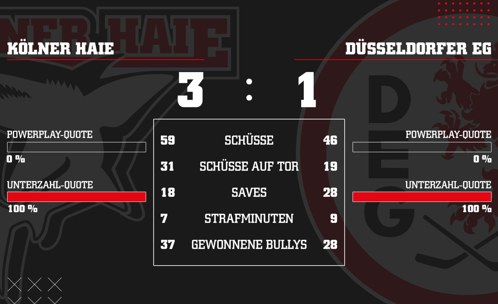 Die DEG drückte und probierte es immer wieder, doch unsere Defensive machte an diesem Abend einen bockstarken Job. Beinahe hätten wir in der 53. Minute auf 3:1 gestellt, doch ein abgefälschter Schuss Mo Müllers landete nur am Pfosten. In der turbulenten Schlussphase behielten wir bei mehreren DEG-Angriffen immer wieder die Ruhe und konnten kurz vor Schluss durch Tim Wohlgemuth ins leere Tor zum 3:1-Endstand treffen! Kurz darauf war das 241. Derby zwischen uns und der DEG Geschichte.