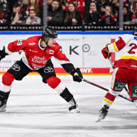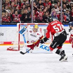 Im zweiten Drittel sollten beide Teams dann aber treffen. Zunächst brachte Andreas Thuresson nach Zuspielen von Andrej Šustr und Louis-Marc Aubry unsere Farben in Führung! Der Schwede brachte sich klug in Position und in Richtung der blauen Linie, lud einmal ordentlich durch und setzte seine Fackel aus zentraler Position am chancenlosen Haukeland vorbei zur 1:0-Führung (22.). Die DEG lie sich – auch durch eine kurz darauf ausgesprochene Vier-Minuten-Strafe gegen Ehl wegen hohen Stocks – nicht aus der Ruhe bringen und spielte weiter gutes und aufmerksames Eishockey.