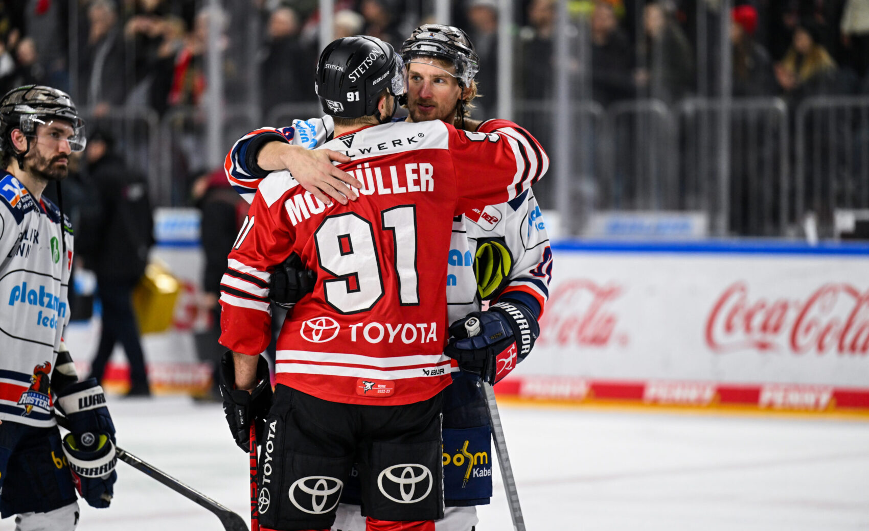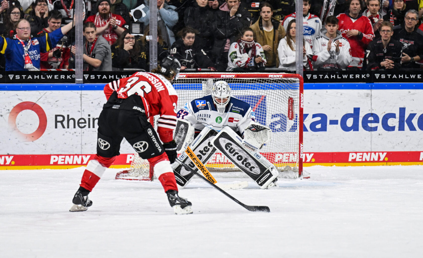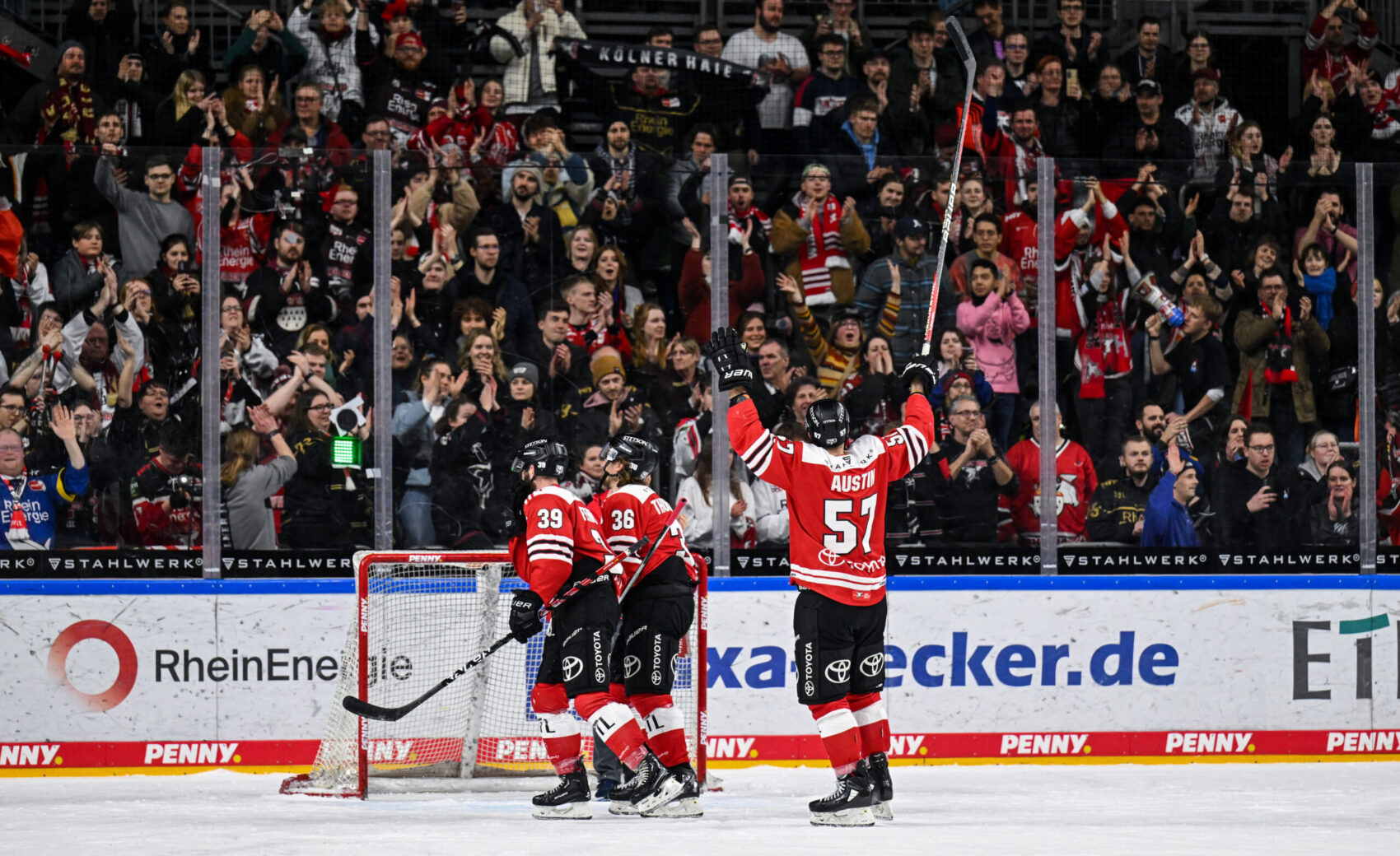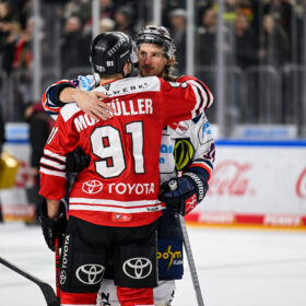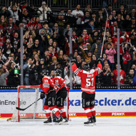 Und so entwickelte sich nach und nach eine irre Schlussphase. Jon Matsumoto traf in der 53. Minute in Überzahl zum 1:3-Anschluss. Dass Cheftrainer Uwe Krupp zu diesem Zeitpunkt bereits Torhüter Mirko Pantkowski vom Eis holte und volles Risiko ging, sprach dafür, dass der KEC noch an den Sieg glaubte. Nur zwei Minuten später, der KEC spielte jetzt wie entfesselt, setzte Brady Austin nach und traf zum 2:3. Die LANXESS arena verwandelte sich immer mehr in ein Tollhaus und man hatte das Gefühl, dass hier an diesem Abend noch etwas ganz Besonderes passieren könnte.