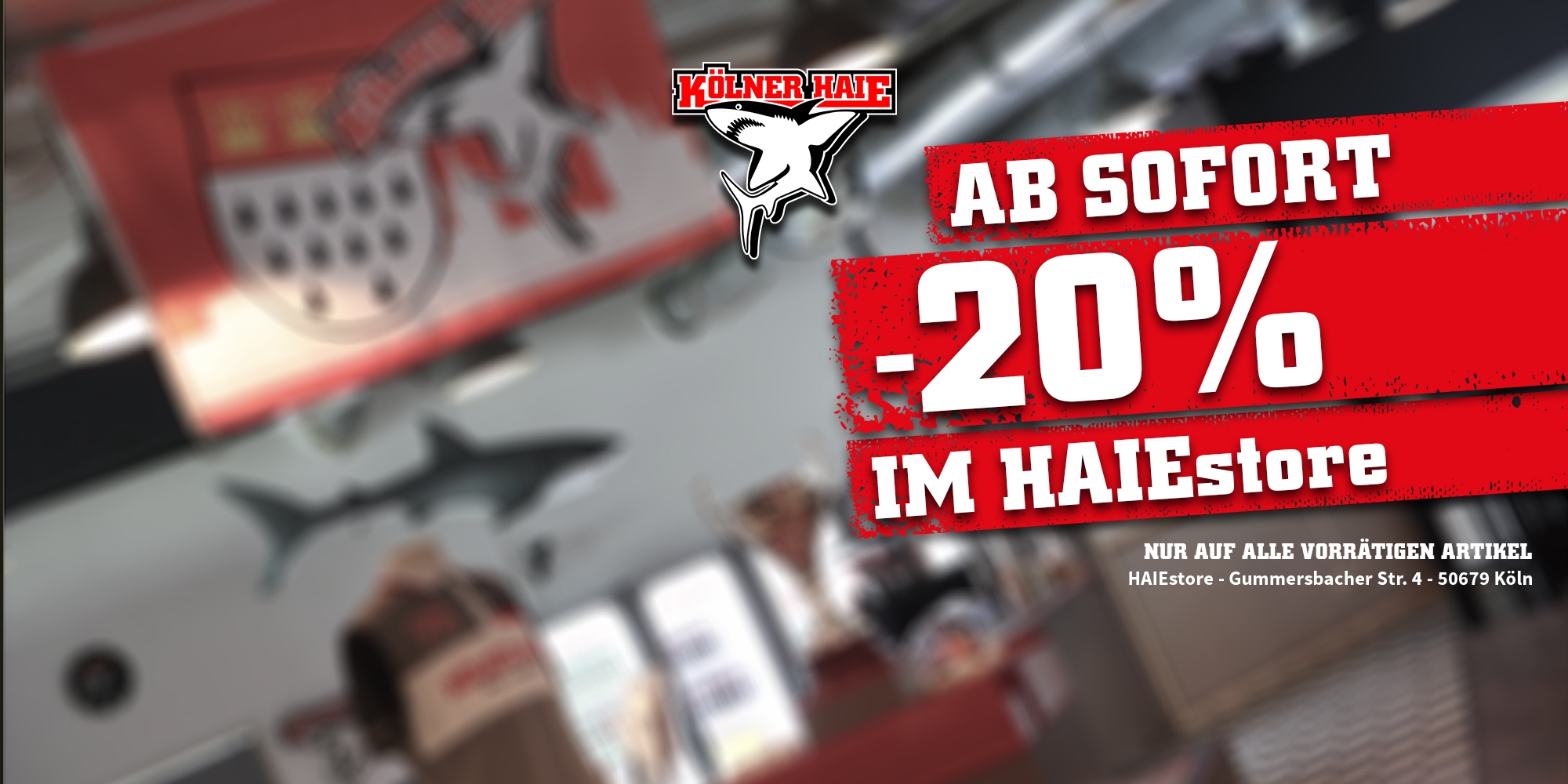 Ab sofort bekommen alle Fans, bis zum Ende der Preistage, auerdem 20 Prozent Rabatt auf Fanartikel im HAIEstore an der Gummersbacher Strae 4 in 50679 Köln.