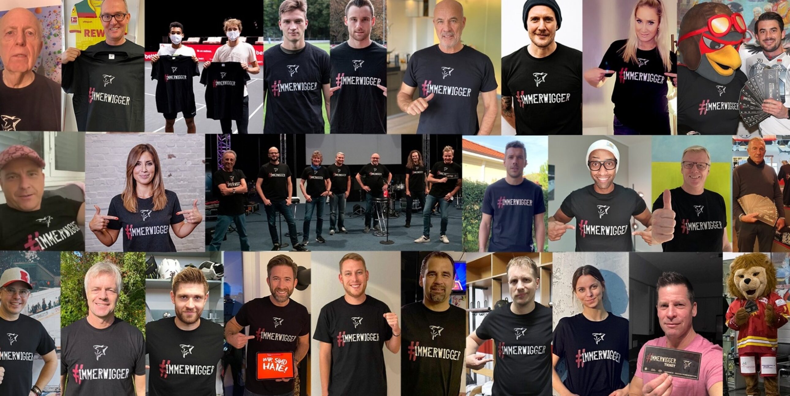 Doch damit nicht genug. Auch Haie-Mitgesellschafter Uwe Eibich, Politiker Jens-Peter Nettekoven und Unternehmen und Institutionen wie der Flughafen Köln Bonn, NetCologne, Radio Köln, Deiters, die LANXESS arena, das Dump n Chase Magazin, die Go GmbH, die Eventagentur Zuckerzahn, BioSteel, Rheinproduktiv, Ströer, Toyota, Kölner Wochenspiegel, Köln Tourismus sowie Sea Life sind Teil der #immerwigger-Kampagne.