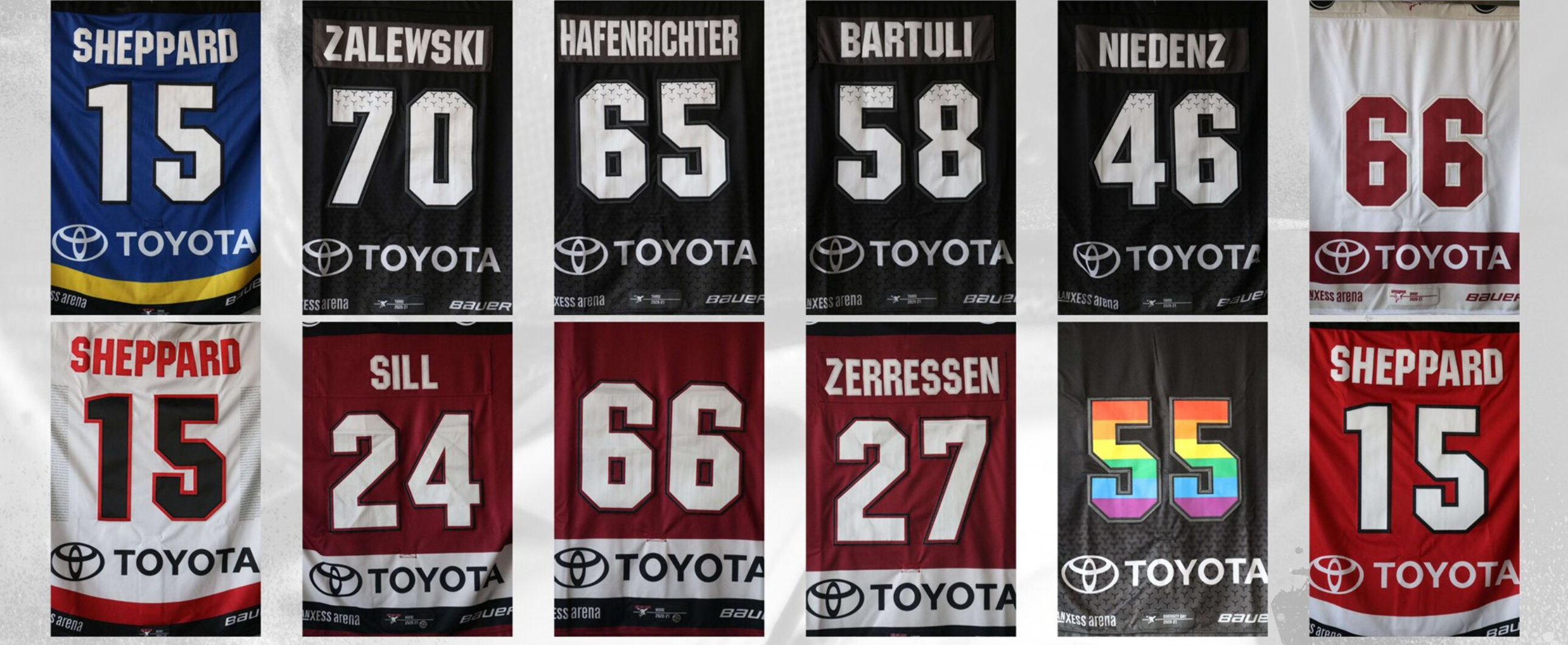 Es handelt sich um rückläufige Trikots, die bei vergangenen Auktionen ersteigert, aber nicht bezahlt wurden. Versteigert werden Heim-, Auswärts-, Ausweich- und Diversity-Day-Trikots diverser Spieler aus der Saison 2020/2021 sowie ein Trikotsatz von James Sheppard aus der laufenden Saison.