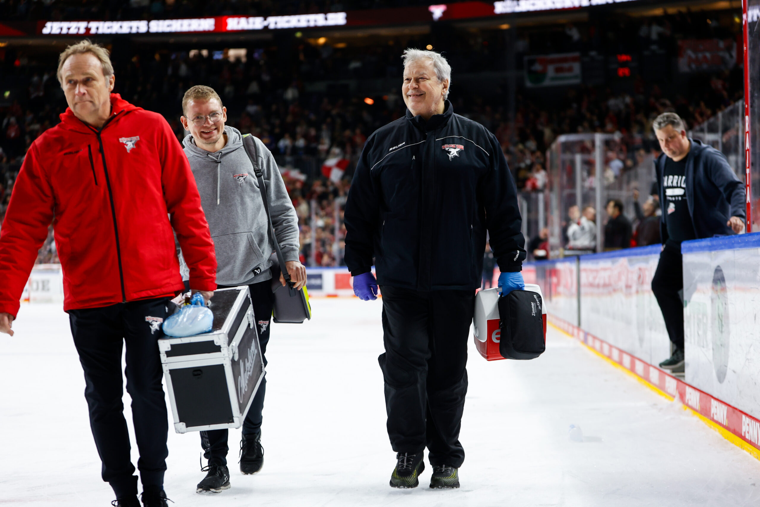 „Genau. Das ist ganz wichtig. Das sind Partner an unserer Seite, die wir kontaktieren können und worüber wir sehr froh sind, wenn sie bereitstehen und uns in den meisten Fällen kurzfristig helfen können. Auch Frauenärzte gehören zum Netzwerk – wenn die Haie-Familie Nachwuchs bekommt, ist es wichtig, die Partnerinnen unserer Spieler im Bereich gynäkologischer Fragen bestmöglich zu unterstützen. Wie ihr seht: Das Portfolio geht weit über die Betreuung hier vor Ort hinaus.“