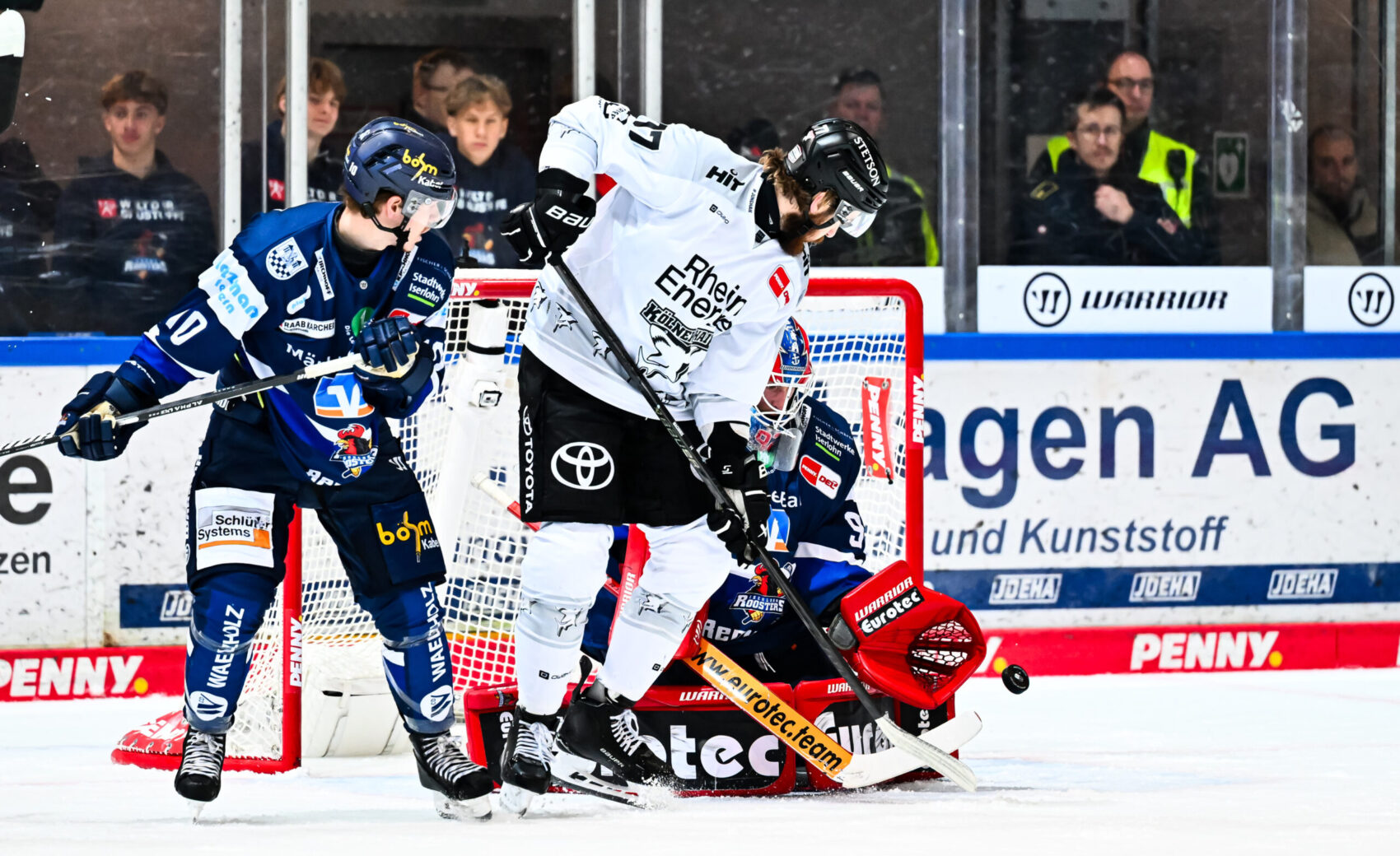 Im Schlussdrittel erhöhte Iserlohn den Druck und kam zu mehreren gefährlichen Szenen – doch Juvonen lief zur Höchstform auf. Mehrfach vereitelte er hochkarätige Chancen und hielt uns in Führung. Insbesondere in der 52. Minute glänzte unsere Nummer 30, als er zunächst zwei zentrale Abschlüsse der Roosters entschärfte, um nur kurz darauf per Hechtsprung im kurzen Eck den vermeintlichen Ausgleich zu verhindern. Cheftrainer Kari Jalonen reagierte und nahm nach starken Iserlohner Minuten eine Auszeit – anschließend kehrte wieder mehr Ordnung in unser Defensivspiel.