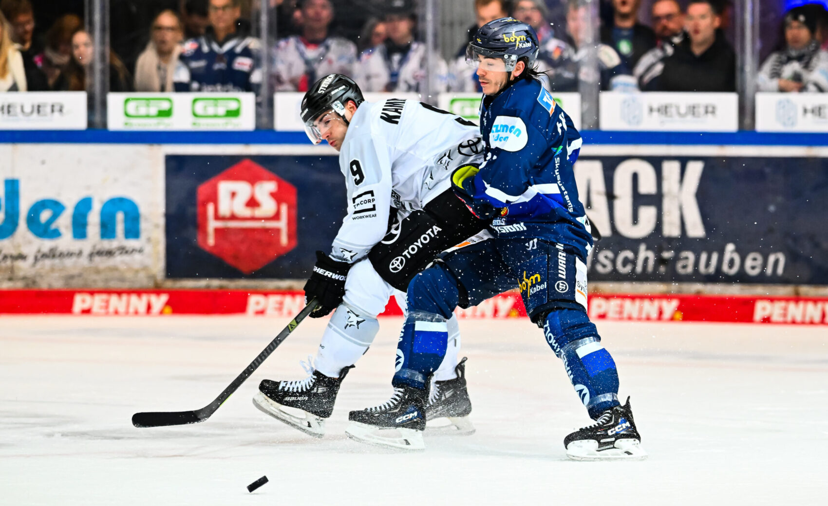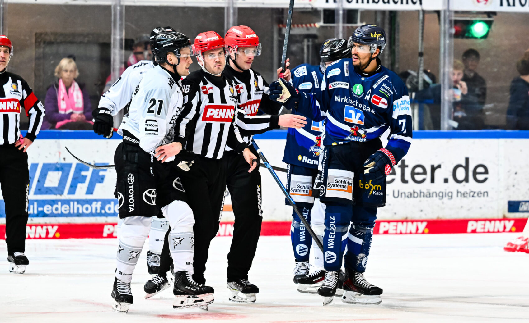 In der 30. Minute bot sich dann unseren Jungs die Chance mit einem Mann mehr auf dem Eis – und wir nutzten dies eiskalt: Patrick Russell vollendete im Slot nach starker Kombination über MacLeod und Aubry per Direktabnahme zum 2:0. Die Partie blieb jedoch intensiv, und Iserlohn gab sich keineswegs geschlagen. Die Roosters verkürzten durch Napravnik auf 1:2 (35.), nachdem zuvor uns die Unterkante der Latte vor dem ersten Gegentreffer bewahrte.