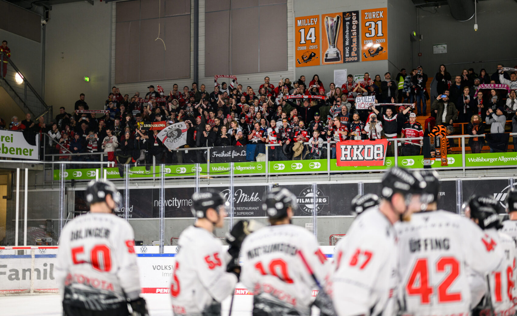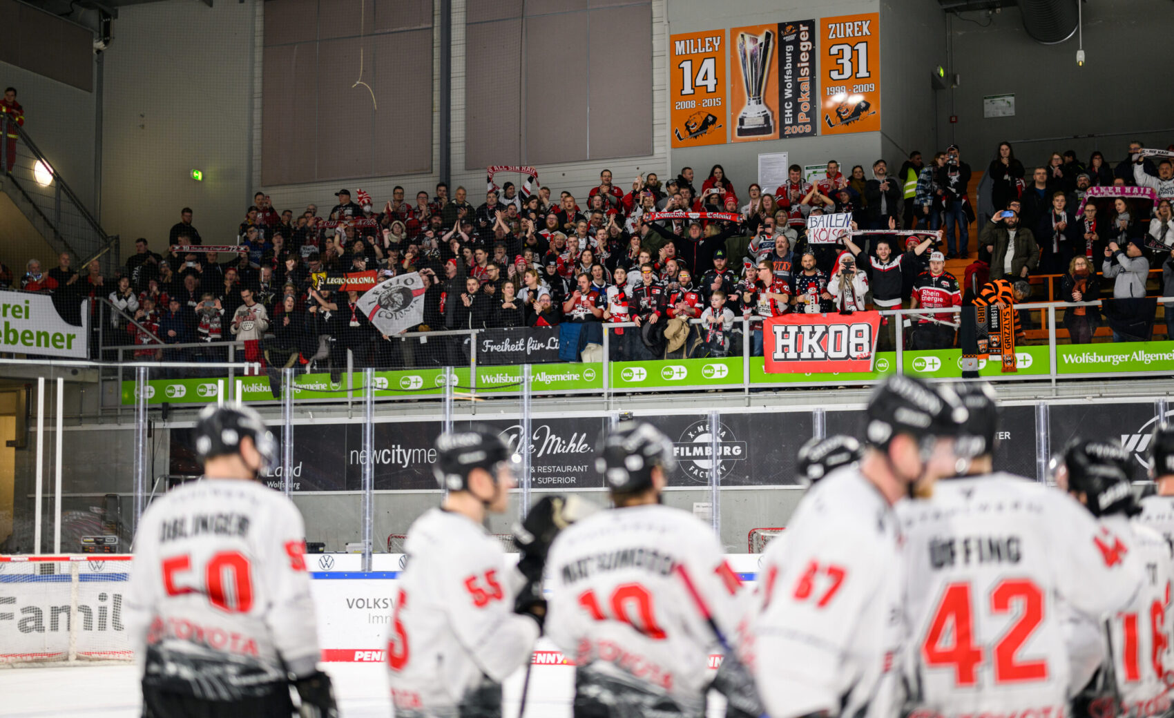 Unsere Mannschaft war (ergebnistechnisch) zurück im Spiel. Im dritten Drittel war dann zunächst die Haie-Defensive gefordert. Oleg Shilin im KEC-Gehäuse stellte mit starken Paraden sicher, dass kein weiterer Gegentreffer dazukam. Dann klaute Maxi Kammerer an der Wolfsburger blauen Linie die Scheibe, zog alleine auf das Grizzlys Tor zu und lie Dustin Strahlmeier im Kasten keine Chance. Mit dem 17. Saisontor des Stürmers gingen die Haie somit das erste Mal an diesem Abend in Führung. Es entwickelte sich ein harter Schlagabtausch in den verbleibenden Minuten. Unter anderem mussten die Haie eine fast zweiminütige doppelte Unterzahl überstehen. Mit einem starken Oleg Shilin, groem Einsatz und defensiver Stabilität überstand unsere Mannschaft die Angriffe der Grizzlys. 24 Sekunden vor dem Ende sorgte Andreas Thuresson mit seinem Treffer in das verwaiste Wolfsburger Tor für den 5:3-Endstand.