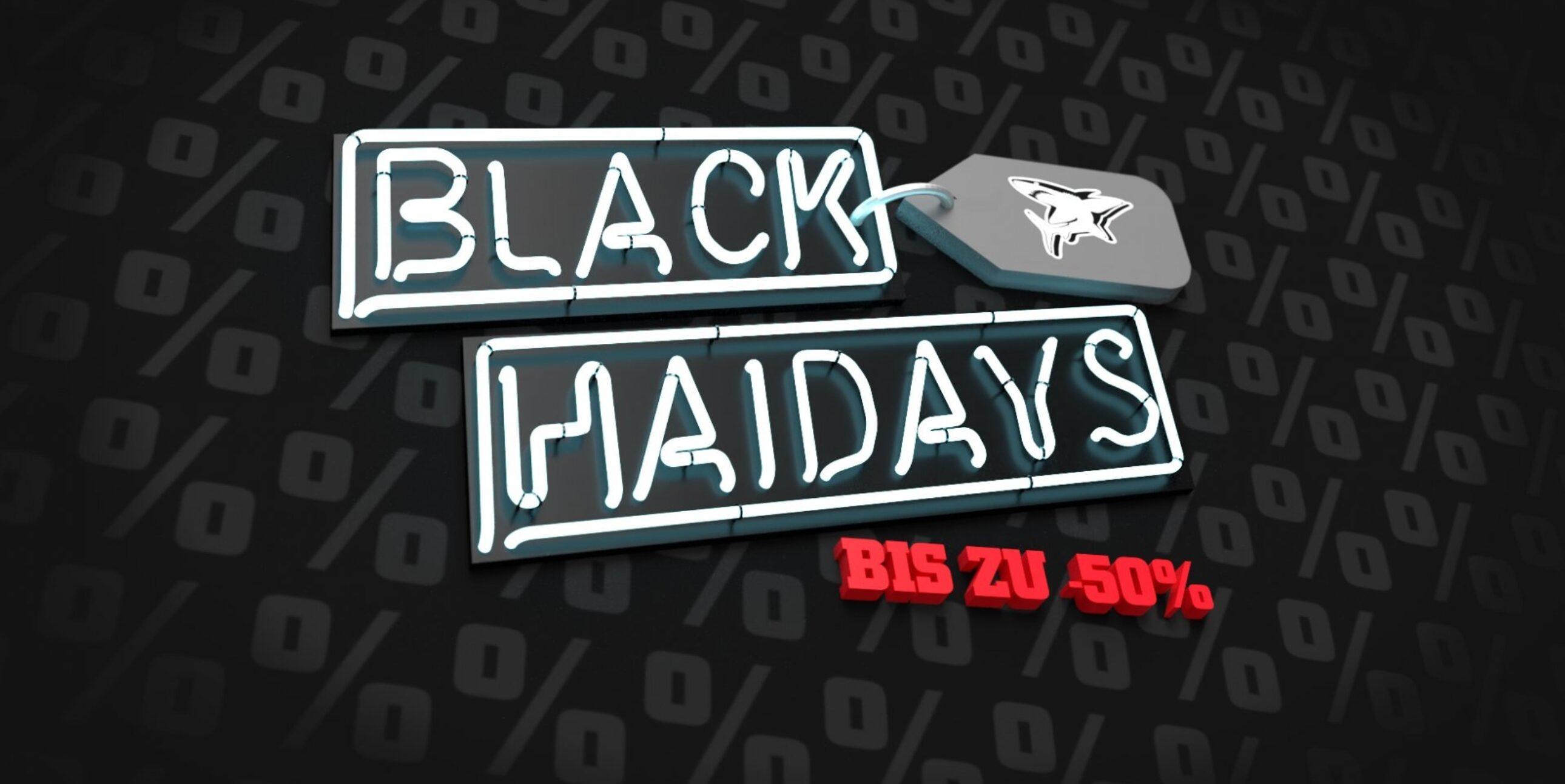 Startschuss für die „Black Haidays“: Ab sofort könnt Ihr Euch satte Rabatte sichern. Bis einschlielich Sonntag bekommt Ihr bis zu 50 Prozent auf ausgewählte Artikel im Haie Online-Shop und vor Ort im HAIEstore in Köln-Deutz (Gummersbacher Str. 4).