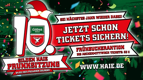 Schon jetzt Tickets für die 10. Gilden Haie Prunksitzung 2021 sichern!