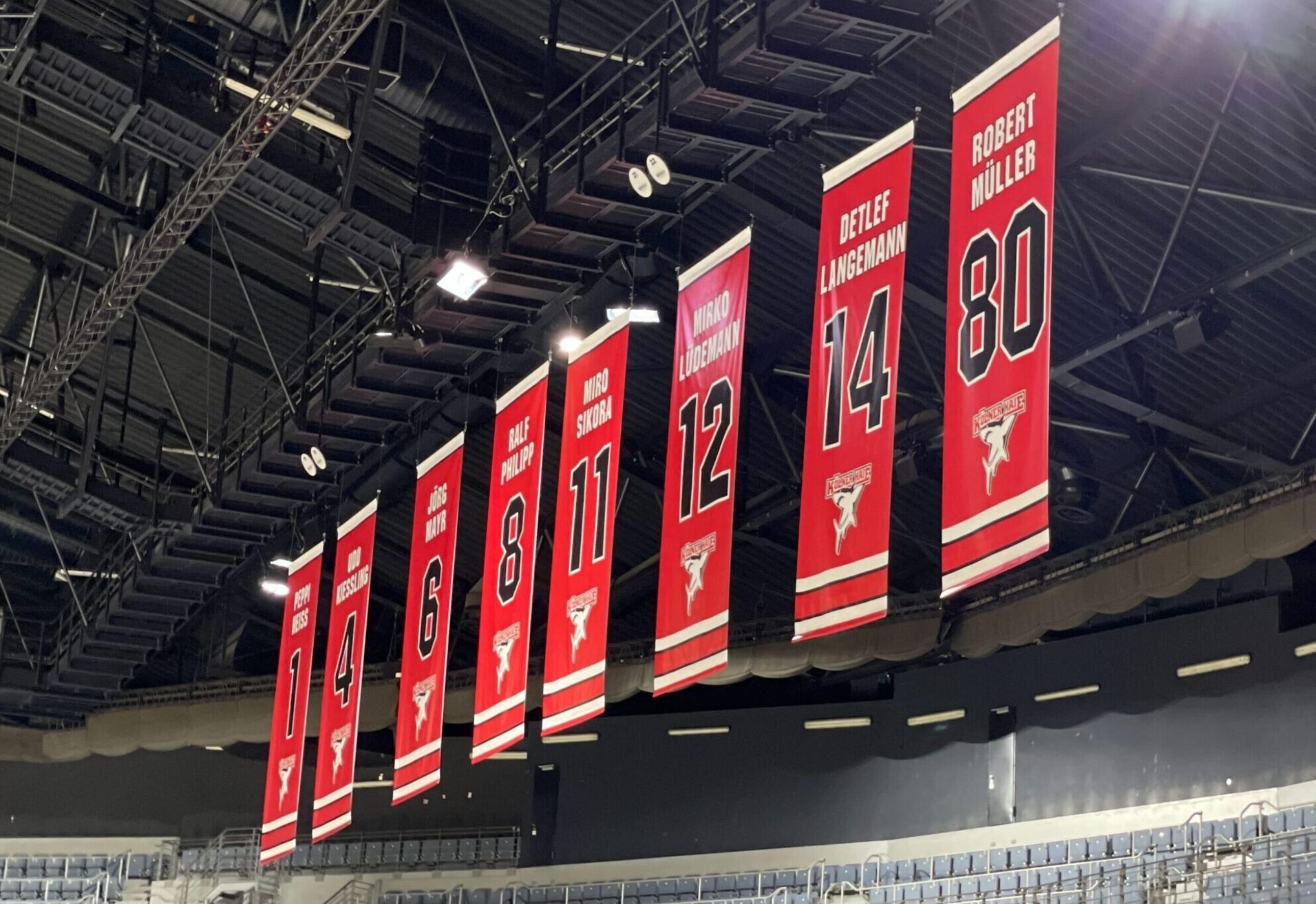 In dieser Woche wurden die Ehrenbanner der acht KEC-Legenden in der LANXESS arena ausgetauscht. So strahlen die Banner in neuem, einheitlichen Look.