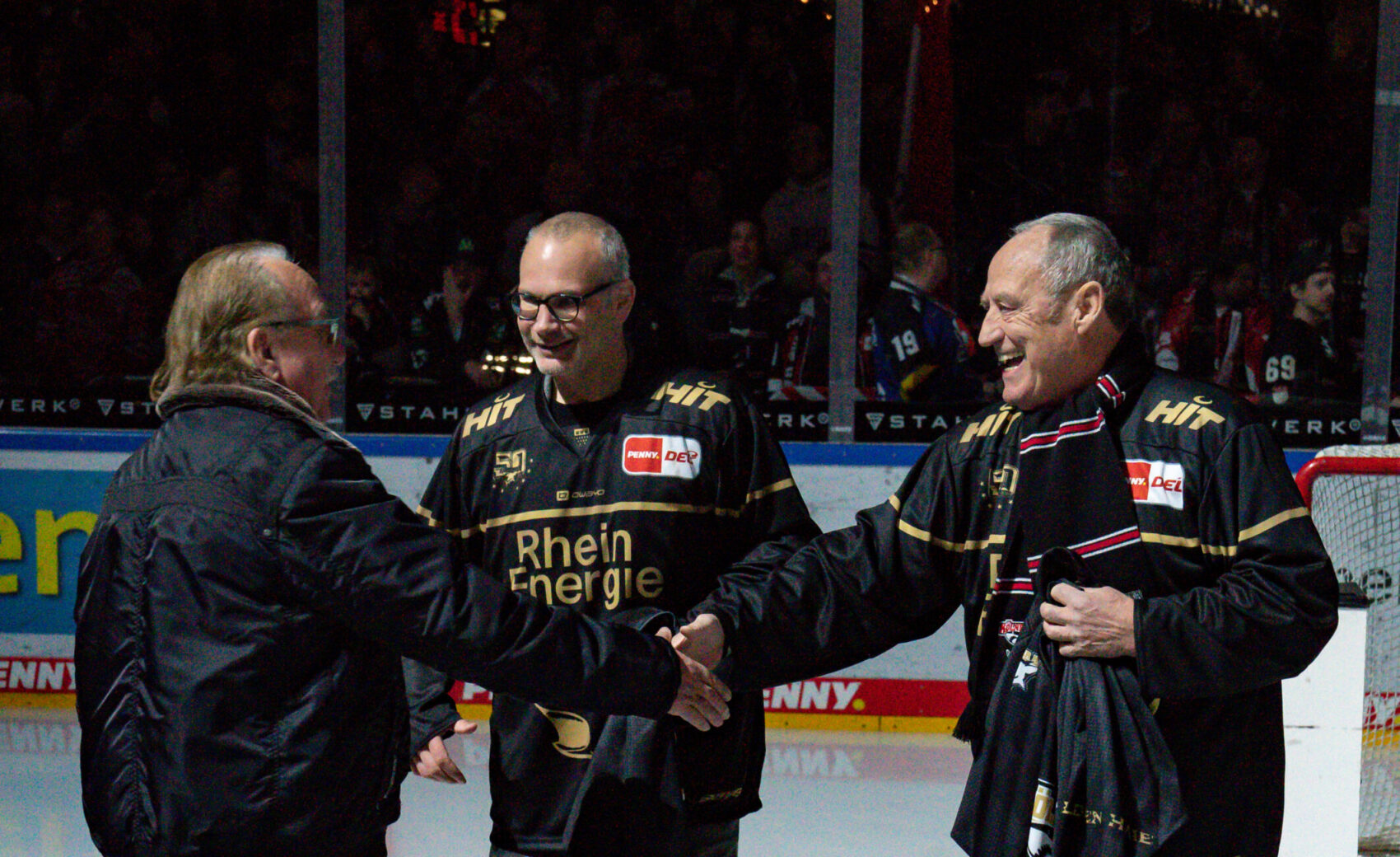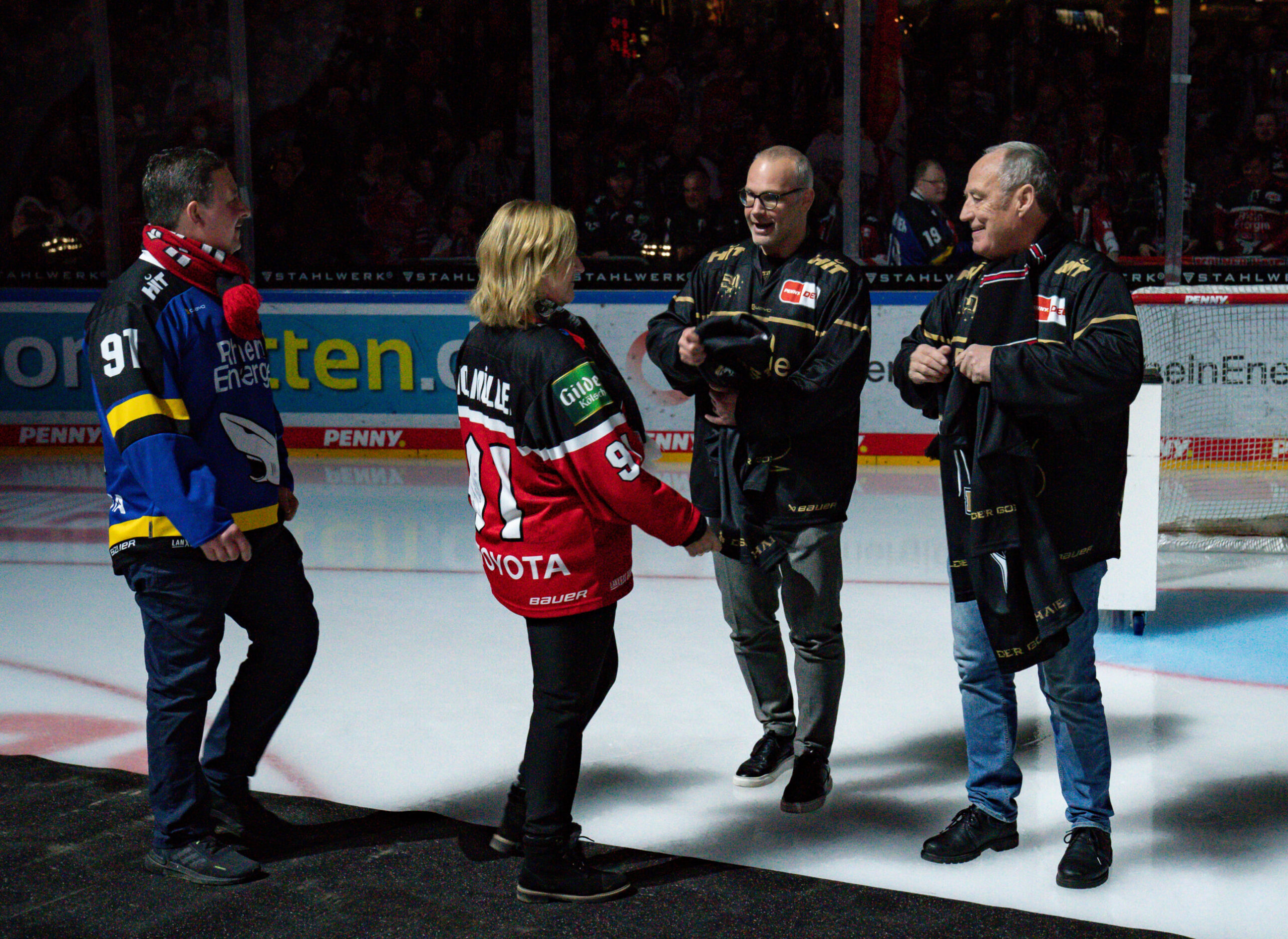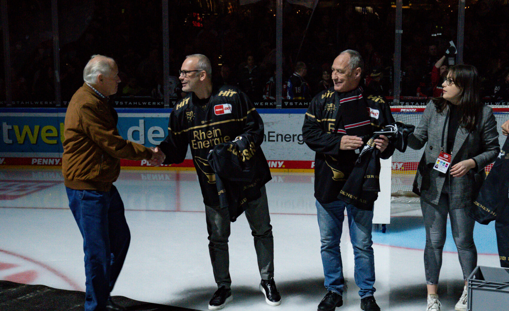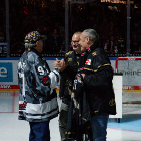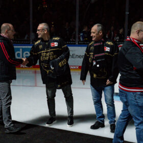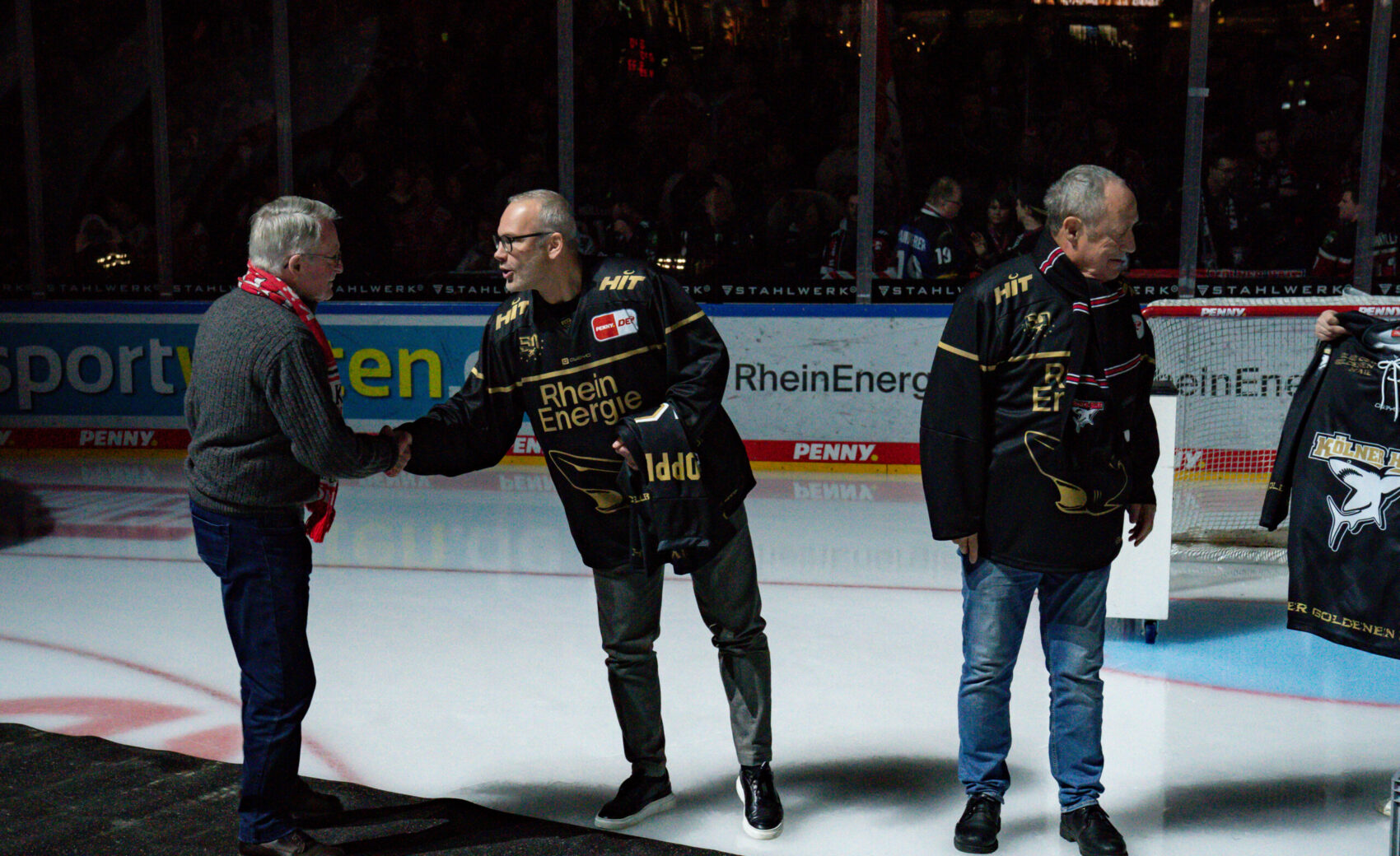 Die neuen Mitglieder des besonderen Clubs durften, wie kurz danach die KEC-Profis, durch das Hai-Maul das Eis betreten. Anschließend bekamen sie von Haie-Rekordspieler Mirko Lüdemann und KEC-Gründungsvater Detlef Langemann ihr persönliches Ehrentrikot überreicht. Da die Ehrung in den vergangenen Jahren ausgefallen ist, wurden in diesem Jahr die Verleihung aus den vergangenen Spielzeiten mit nachgeholt.