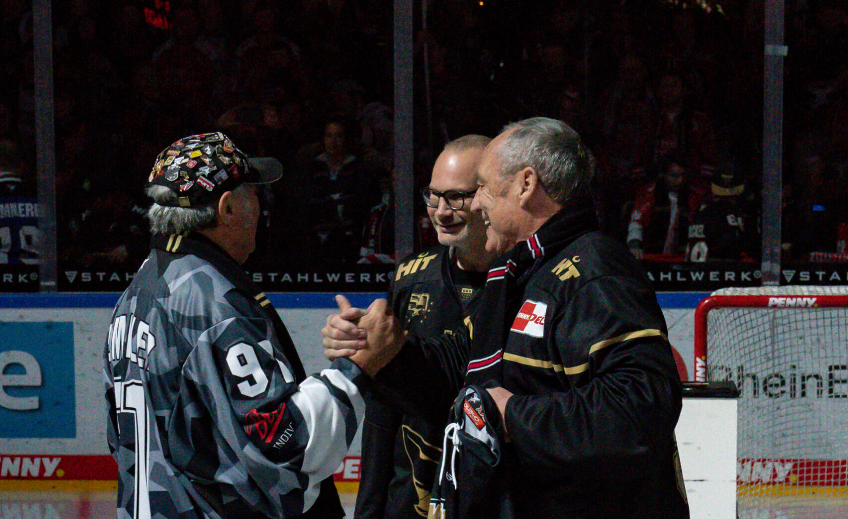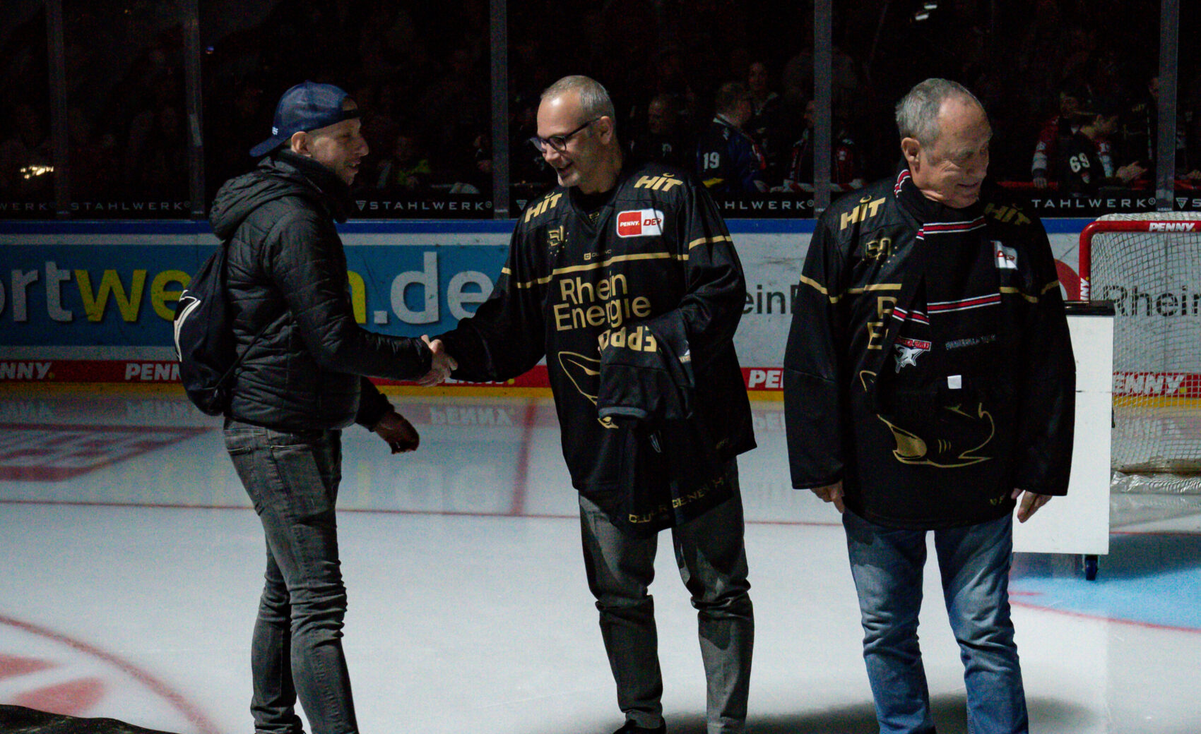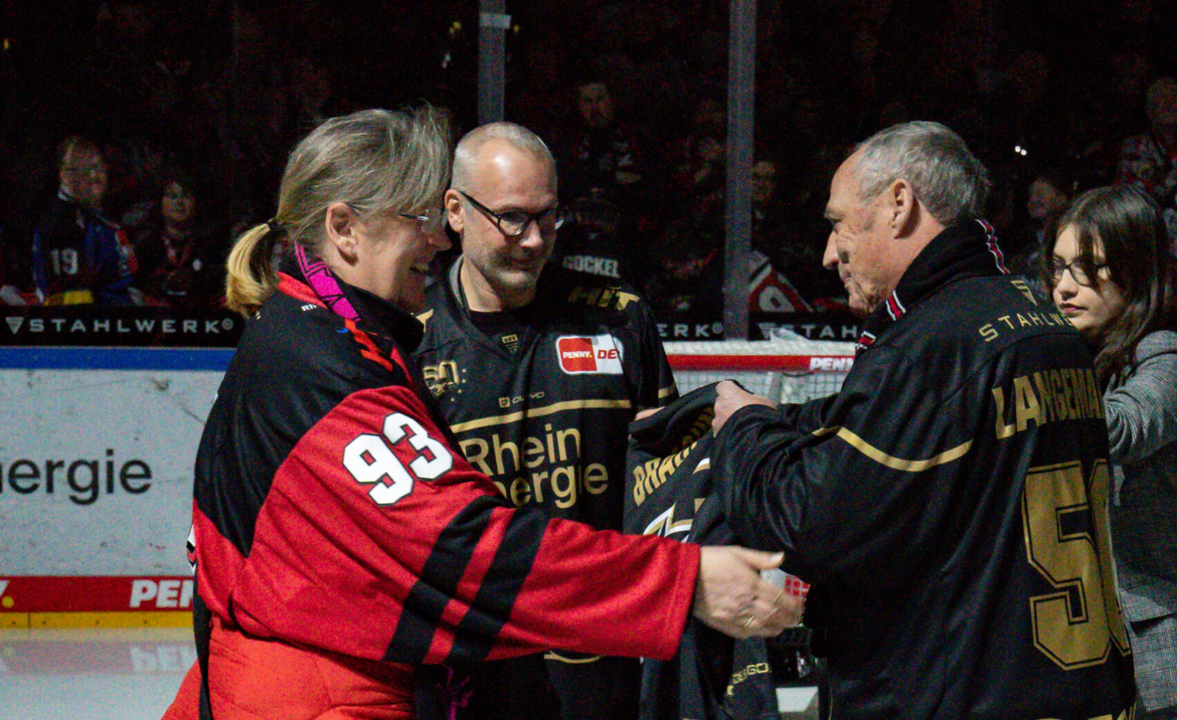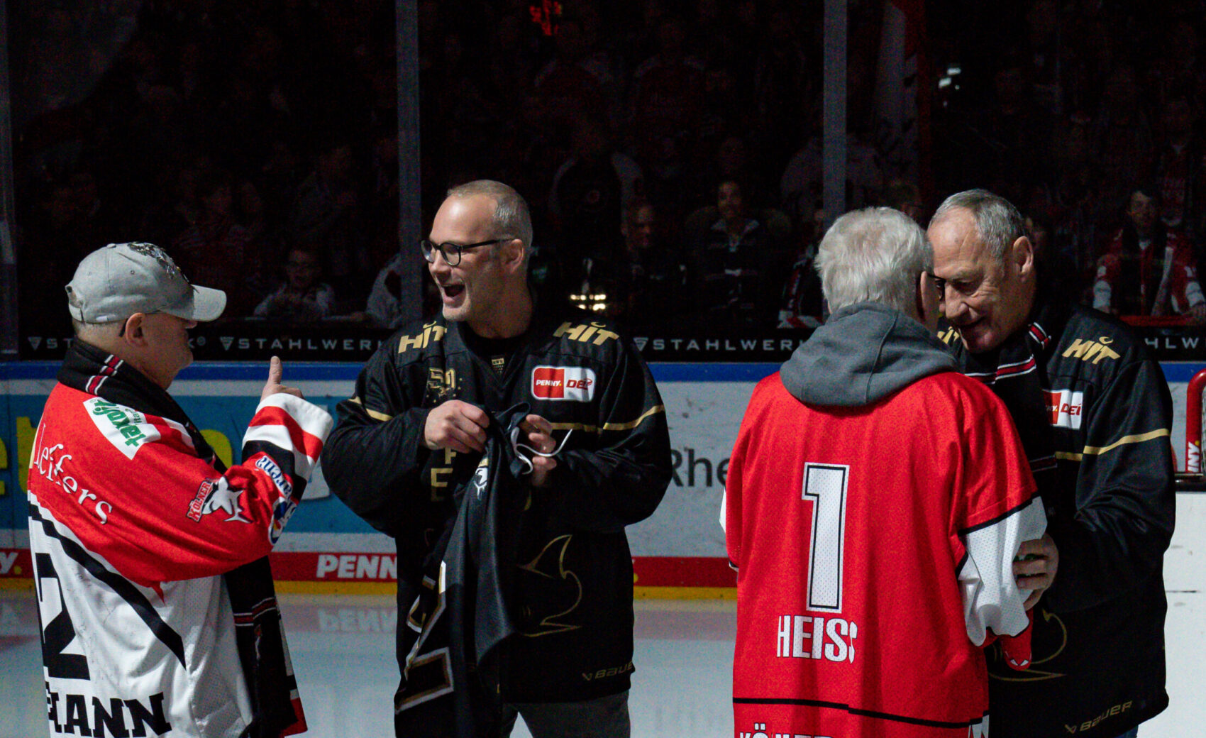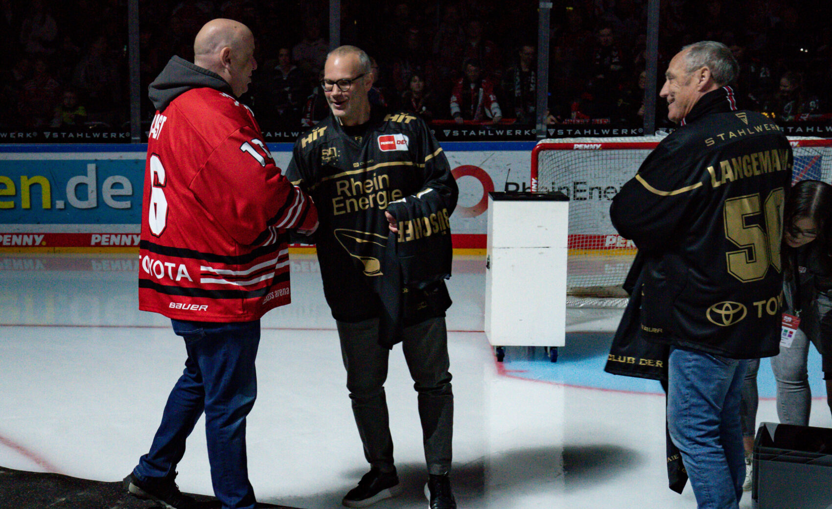 Die neuen Mitglieder des besonderen Clubs durften, wie kurz danach die KEC-Profis, durch das Hai-Maul das Eis betreten. Anschließend bekamen sie von Haie-Rekordspieler Mirko Lüdemann und KEC-Gründungsvater Detlef Langemann ihr persönliches Ehrentrikot überreicht. Da die Ehrung in den vergangenen Jahren ausgefallen ist, wurden in diesem Jahr die Verleihung aus den vergangenen Spielzeiten mit nachgeholt.