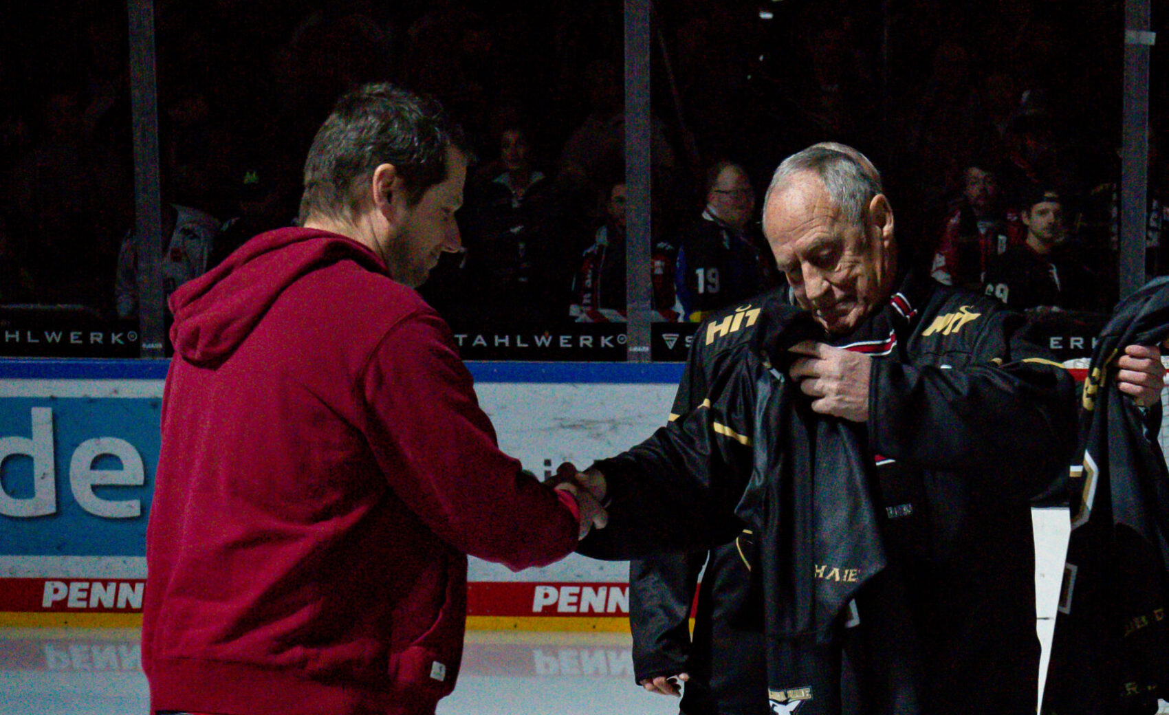 Auf diese Weise wollen die Haie DANKE sagen für großartige Treue und Loyalität. Die „ältesten“ Goldenen Haie sind seit über 40 Jahren im Besitz einer Dauerkarte – unglaublich!