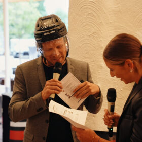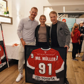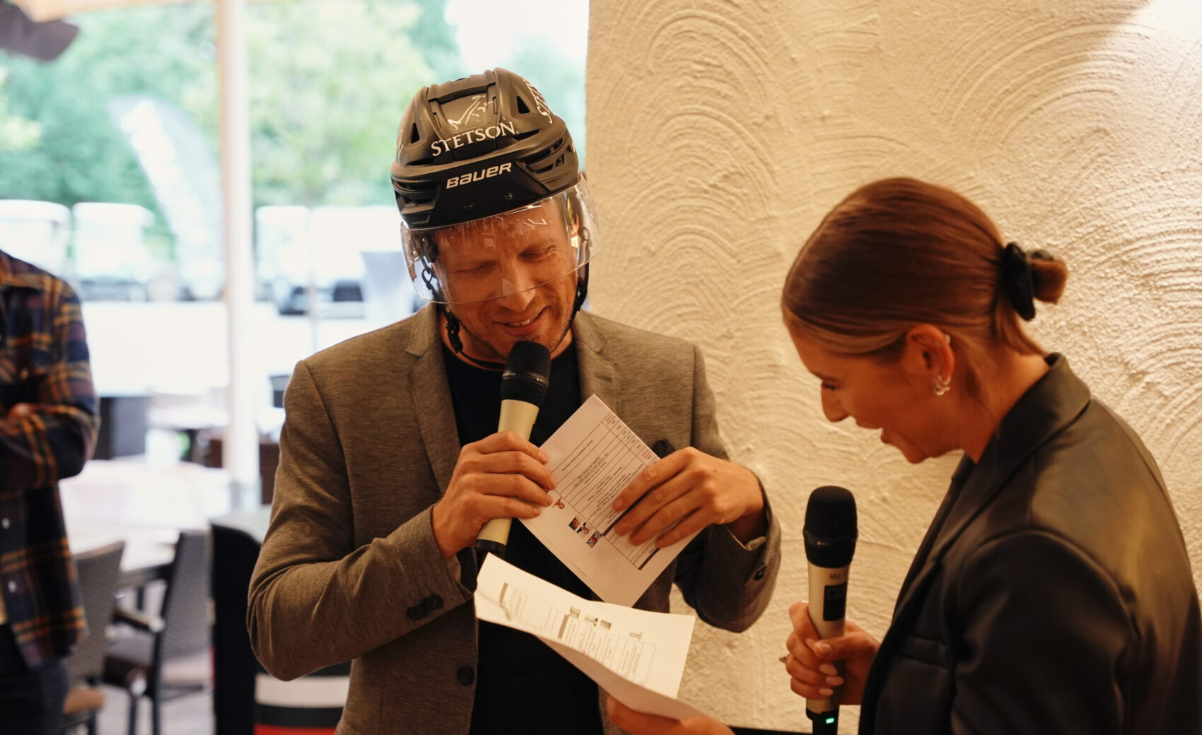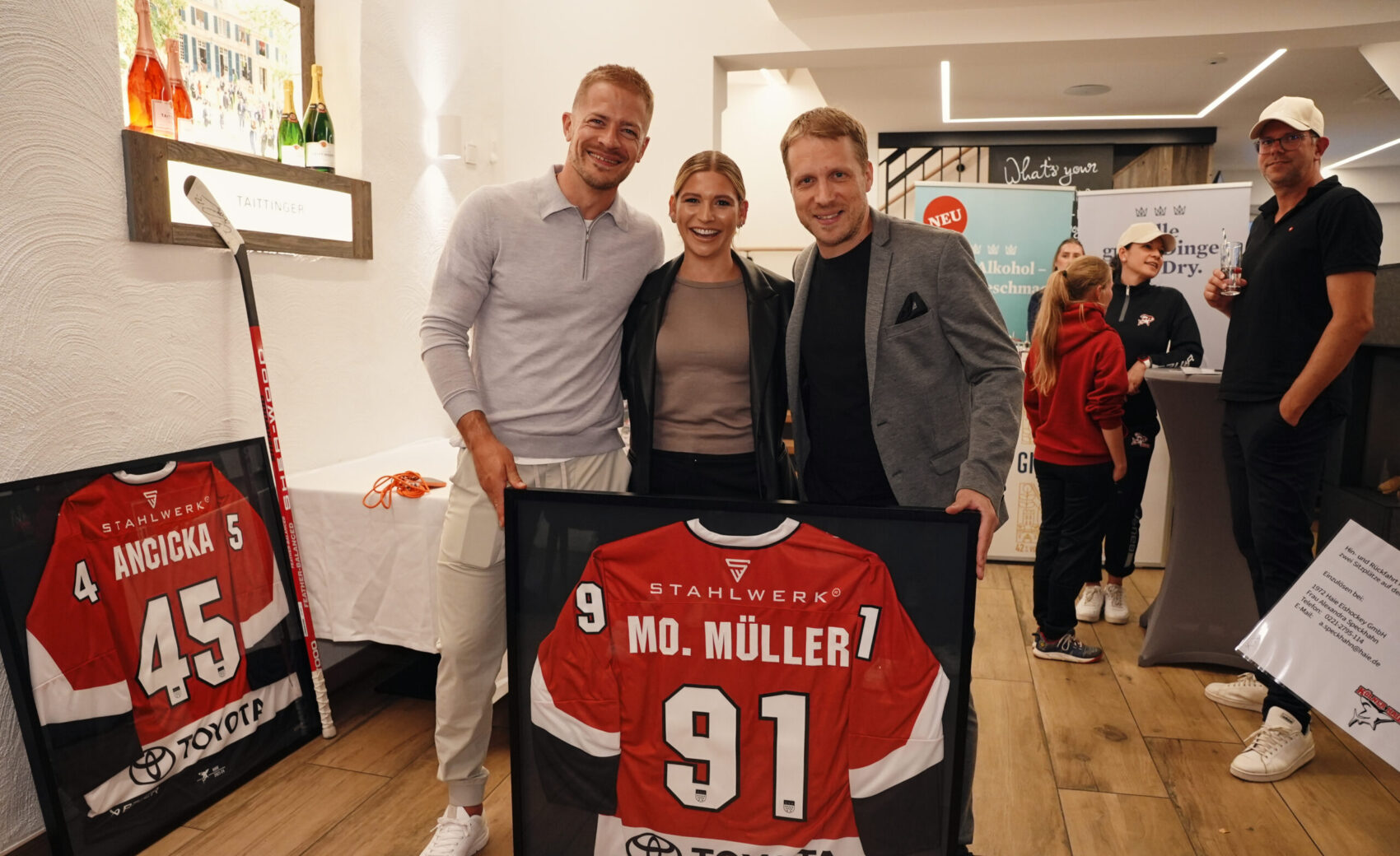 Die bekannten Moderatoren Jana Wosnitza und Oliver Pocher führten im Anschluss durch den Abend und die große Versteigerung zugunsten der Junghaie. Dabei wurden lukrative Preise wie beispielsweise eine Auswärtsfahrt im Haie-Mannschaftsbus oder eine Stunde Eistraining mit Co-Trainer Thomas Brandl versteigert. Auch mehrere der neuen Heimtrikots gingen über den Tresen. Insgesamt kamen so 29.720 Euro zugunsten der Junghaie zusammen.