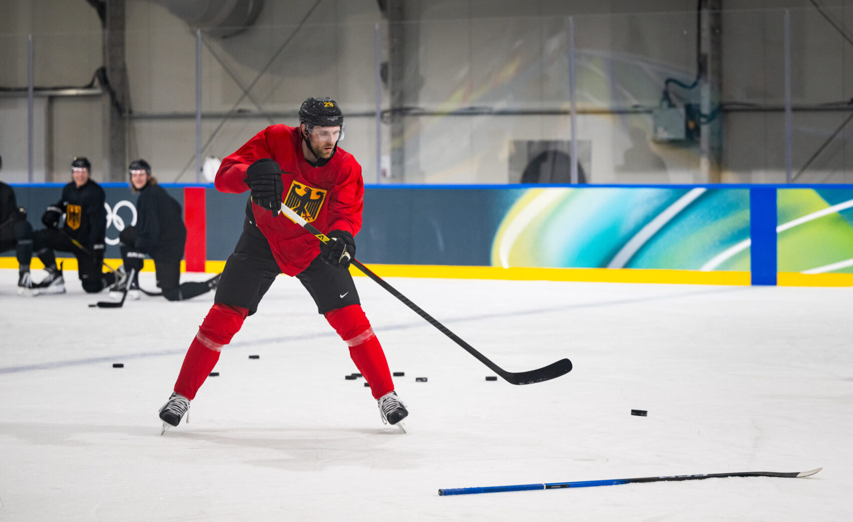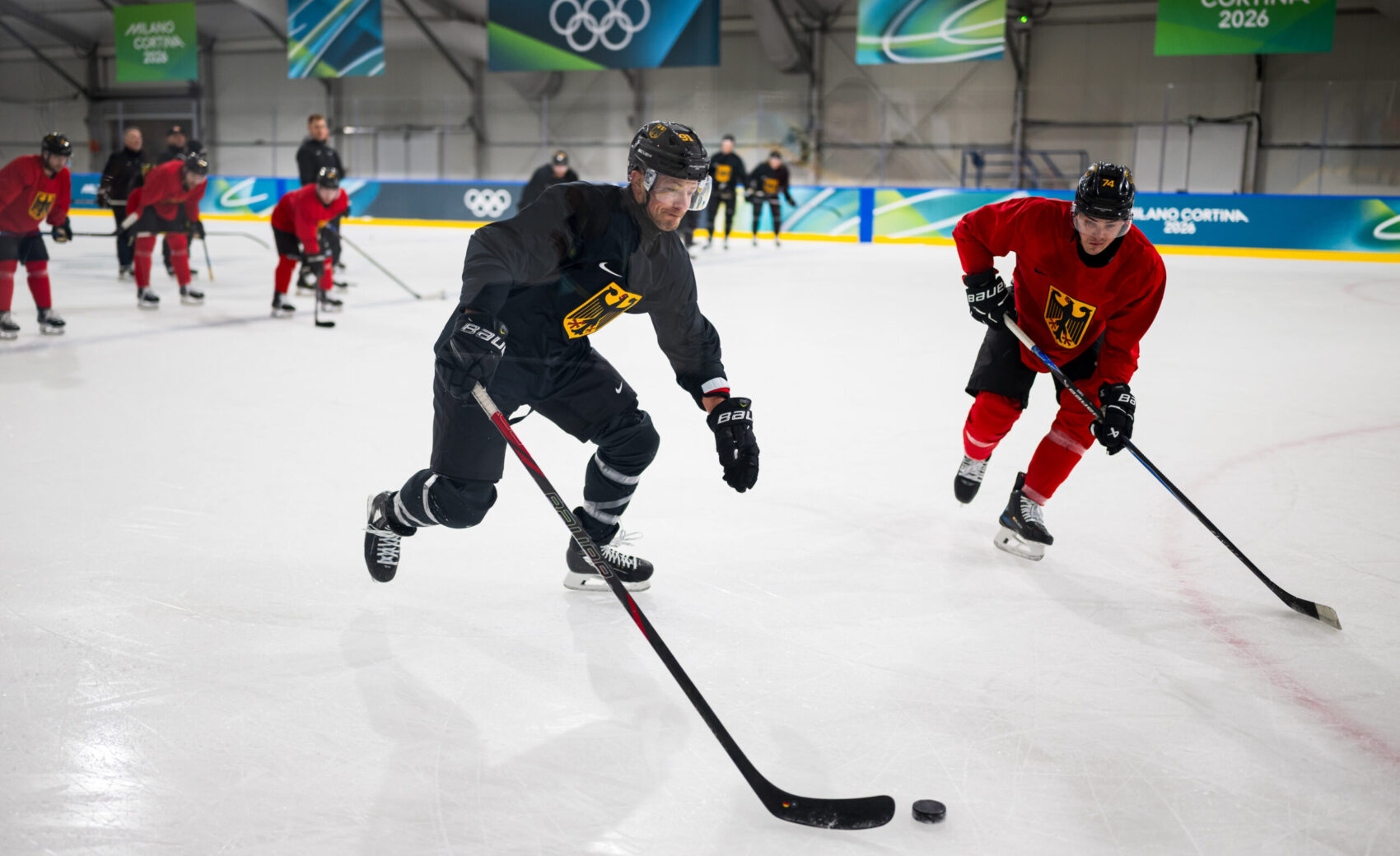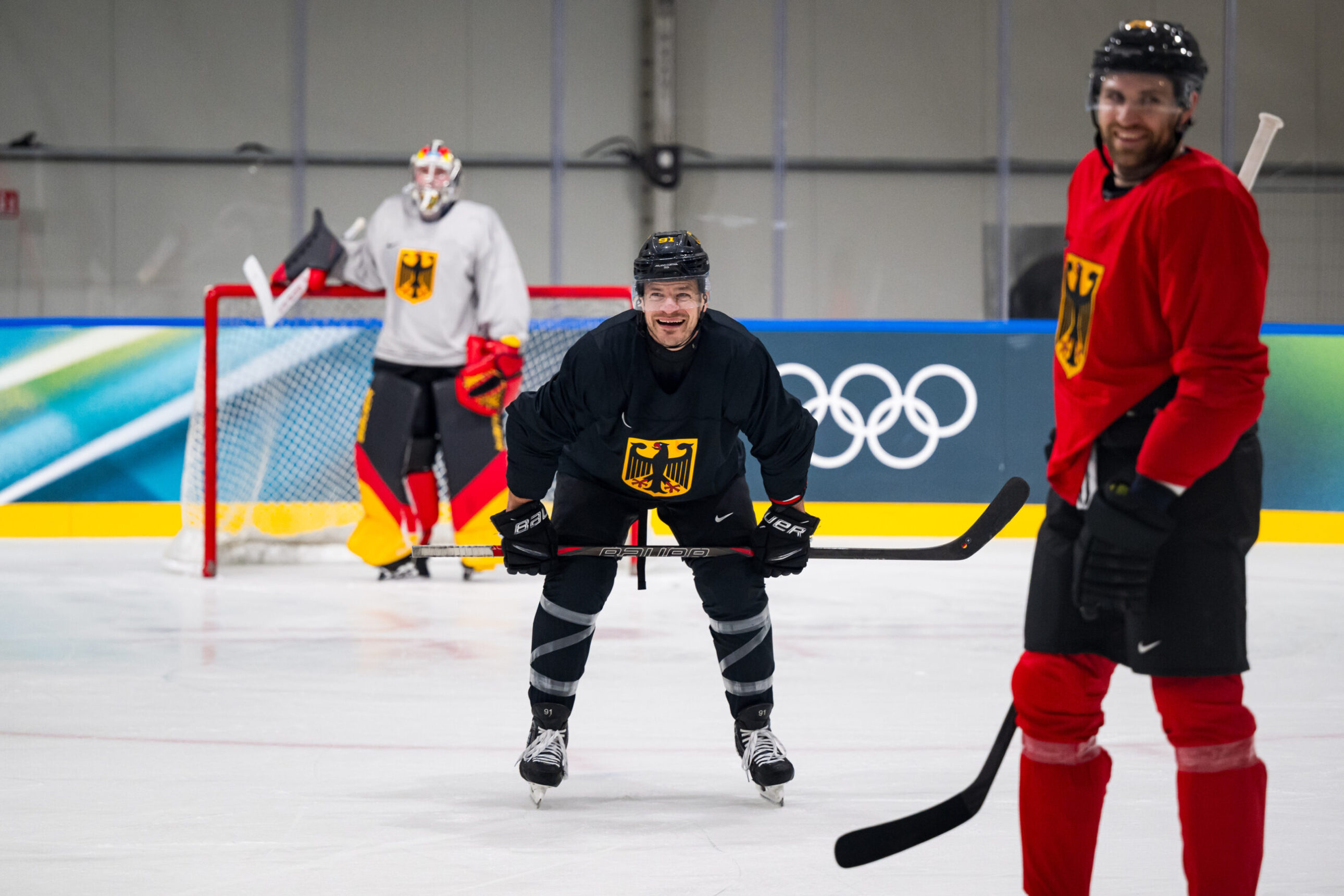 Nach der tollen Eröffnungsfeier am Freitagabend sind die Olympischen Spiele 2026 in Italien im vollen Gange. Die deutsche Eishockey-Nationalmannschaft ist mittlerweile vollzählig, auch die Spieler aus der nordamerikanischen NHL sind zum Team von Cheftrainer Harold Kreis gestoßen. Der volle Fokus liegt nun auf der Vorbereitung auf die drei Gruppenspiele. Am Donnerstag (21:10 Uhr) startet das deutsche Team mit Moritz Müller und Parker Tuomie ins Turnier, es steht die Partie gegen Dänemark mit Frederik Storm und Patrick Russell an. Wir haben ein paar frische Bilder aus Italien.