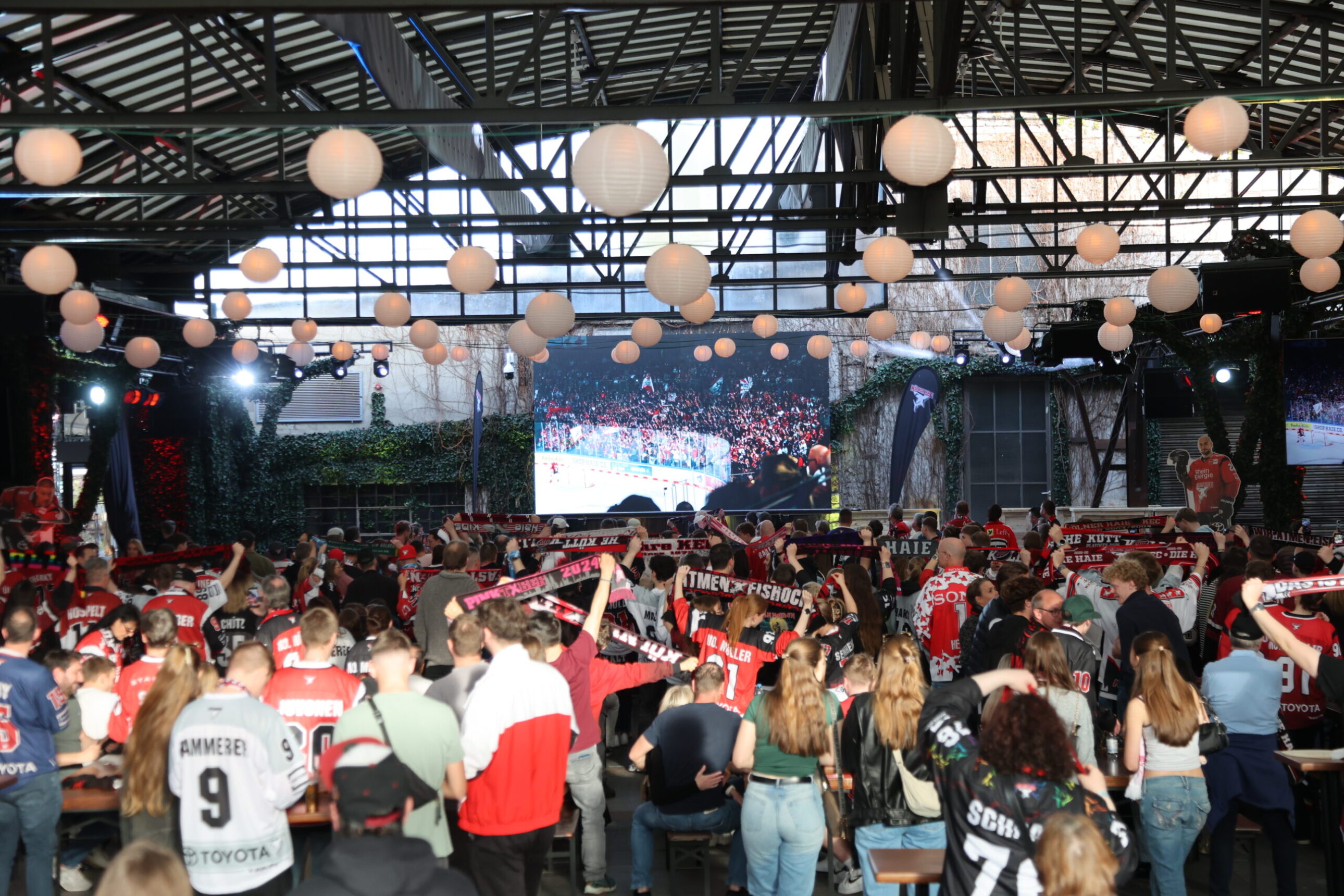 Auch wenn die Haie auswärts auf dem Eis stehen, lassen es sich unsere Fans nicht nehmen, gemeinsam mitzufiebern. Gestern waren bereits über 500 Haie-Fans beim Public Viewing mit echter Arena-Atmosphäre in cooler Location. Am kommenden Sonntag findet die nächste Übertragung in der HALLE TOR 2 statt – und ihr könnt mit dabei sein!