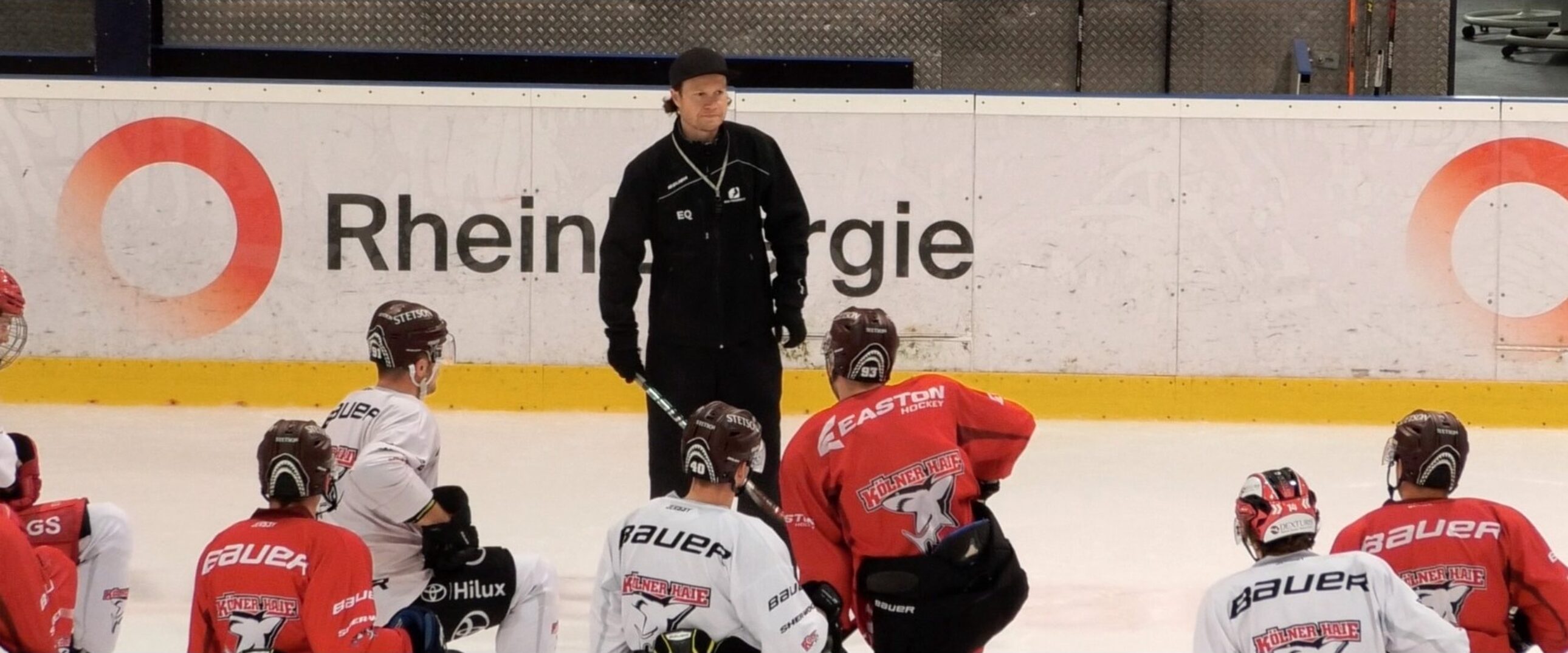 Im Bild: Skills-Coach Eetu Qvist erklärt eine Übung (Kölner Haie)