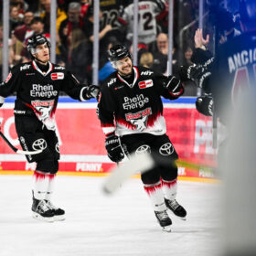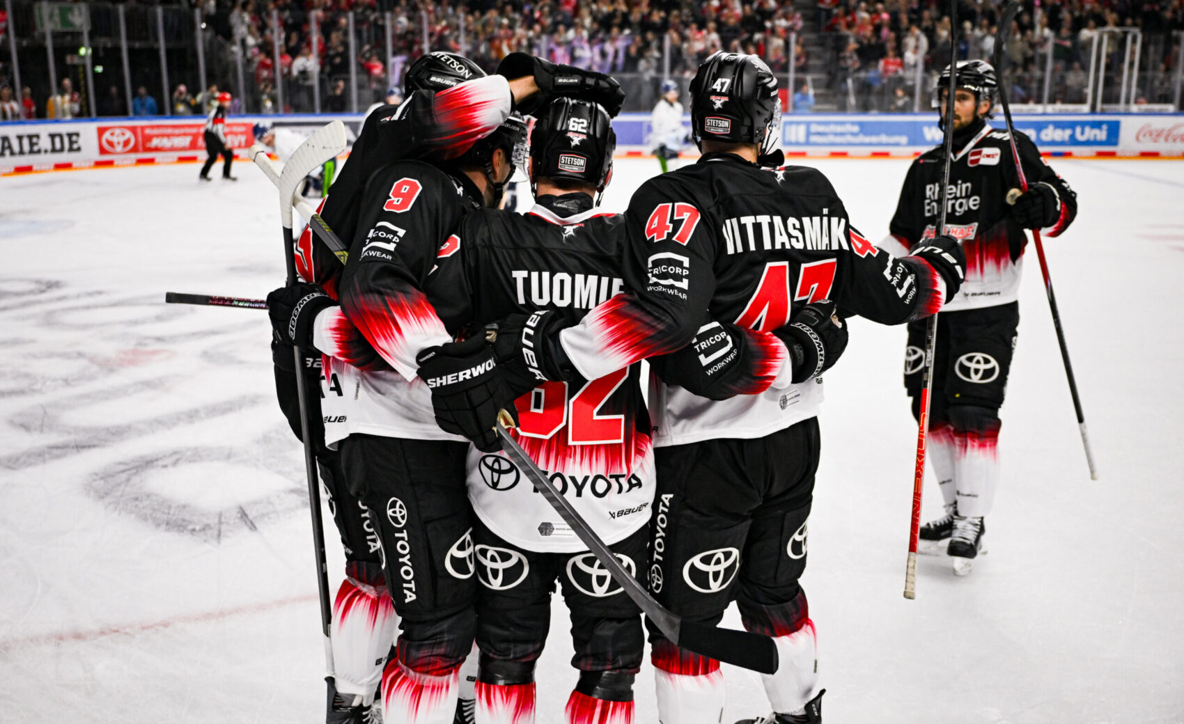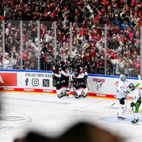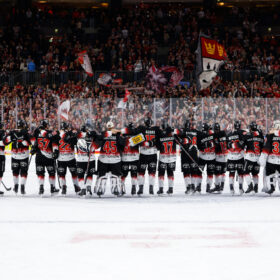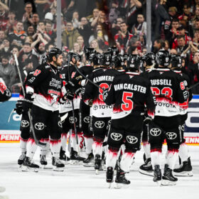 Das diesjährige Third Trikot ist in einem edlen Schwarz gehalten und besticht am unteren Ende des Jerseys mit einem dynamischen Farbverlauf über Rot zu Weiß. Das auffällige Design vereint Tradition und Power – perfekt abgestimmt auf die Leidenschaft und Energie, die unsere Jungs auf dem Eis verspürten.