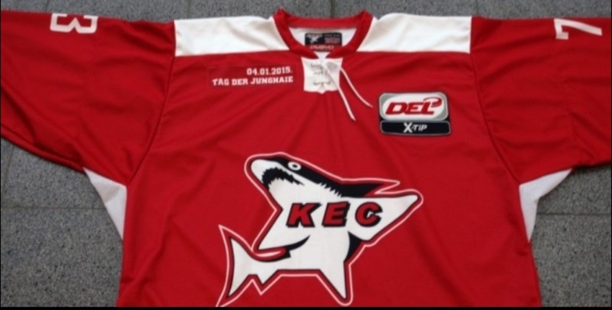 Die Trikots wurden eigens für den „Tag der Junghaie“ am 04.01.2015 angefertigt. Es handelt sich hierbei um Unikate, welche vom jeweiligen Spieler bei diesem Match getragen wurden. Sie können unter Umständen Spielspuren wie „Puck Marks“ (Puckspuren) oder „Board Burns“ (durch Entlangreiben an der Bande verursachte „Brandstellen“) aufweisen.