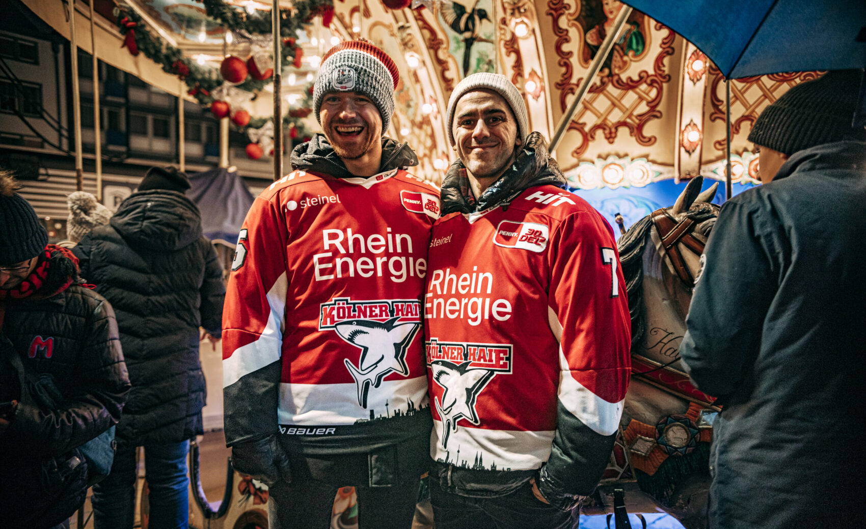 Am Dienstag hieß es einmal mehr „Haie-Stunde“ auf dem Weihnachtsmarkt. Für den guten Zweck war nahezu unsere gesamte Mannschaft auf dem Heinzels Wintermärchen Weihnachtsmarkt am Heumarkt/Alter Markt vertreten.