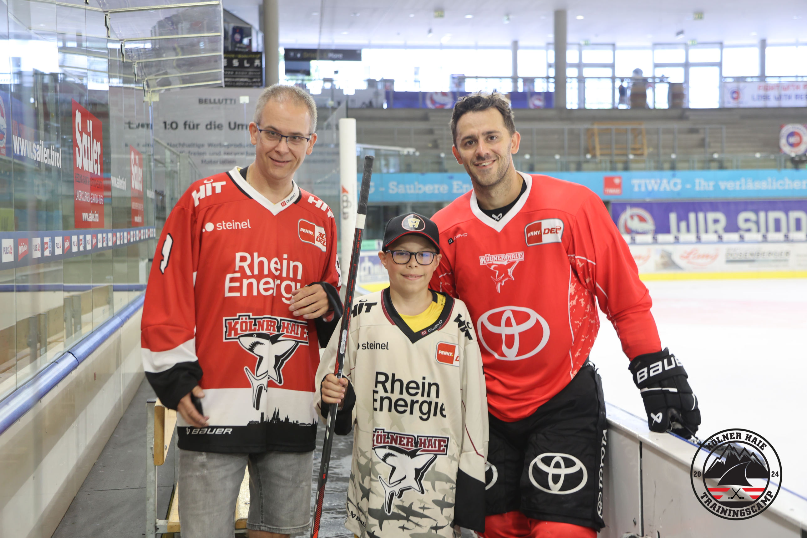 Als wir heute beim Training in der Innsbrucker TIWAG Arena waren, ist uns eine dreiköpfige Gruppe aufgefallen, die wir einfach mal angesprochen haben. Wie sich herausstellte, sind Annie (69), Torsten (45) und Bram (12) extra aus Kerkrade (Niederlande) angereist, um die (Kölner) Haie live zu erleben. Wir sind mit dem sympathischen Trio schnell ins Gespräch gekommen und wollten natürlich wissen, wie es zur Liebe zum KEC gekommen ist. Bram, riesengroer Nick Bailen-Fan, wurde zuvor noch in einem besonderen Mae überrascht.