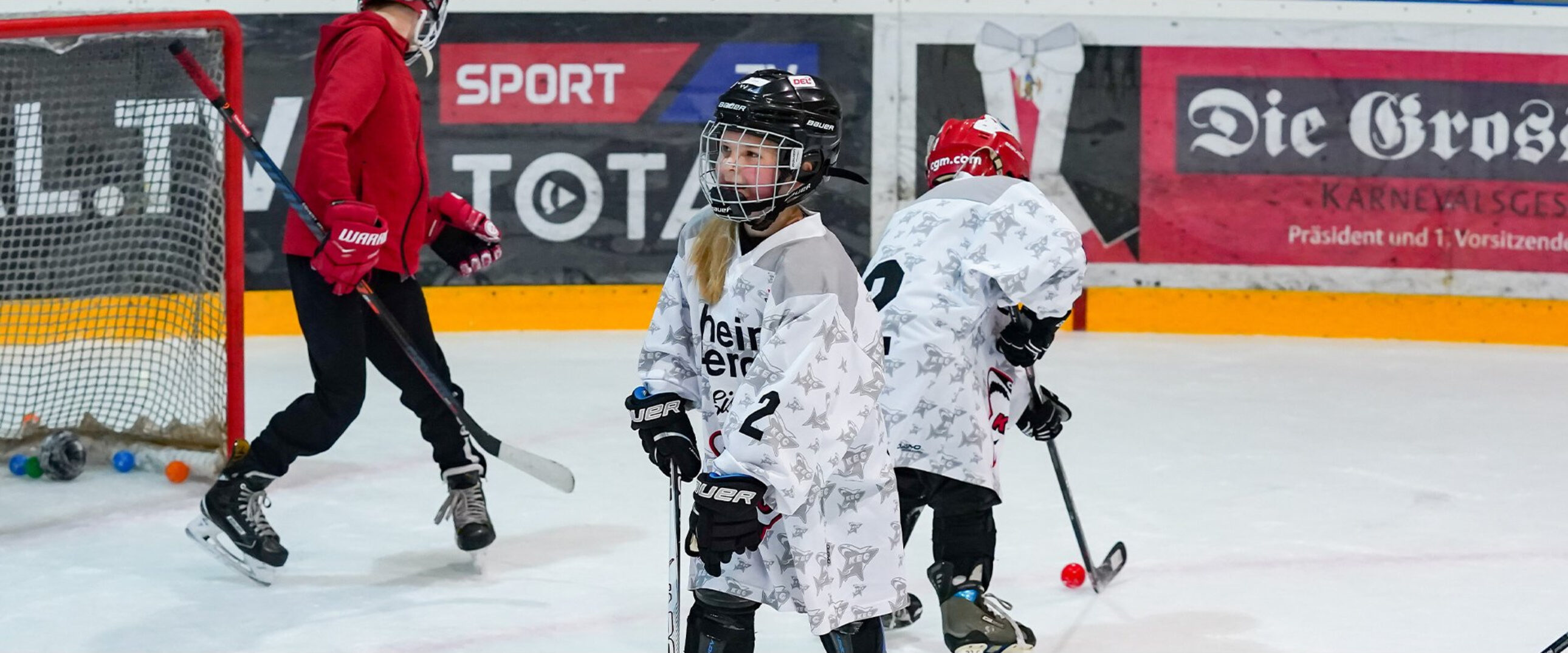 Am 30. Oktober 2021 haben eishockeyinteressierten Mädchen die Eisfläche im Trainingszentrum des KEC für sich allein.