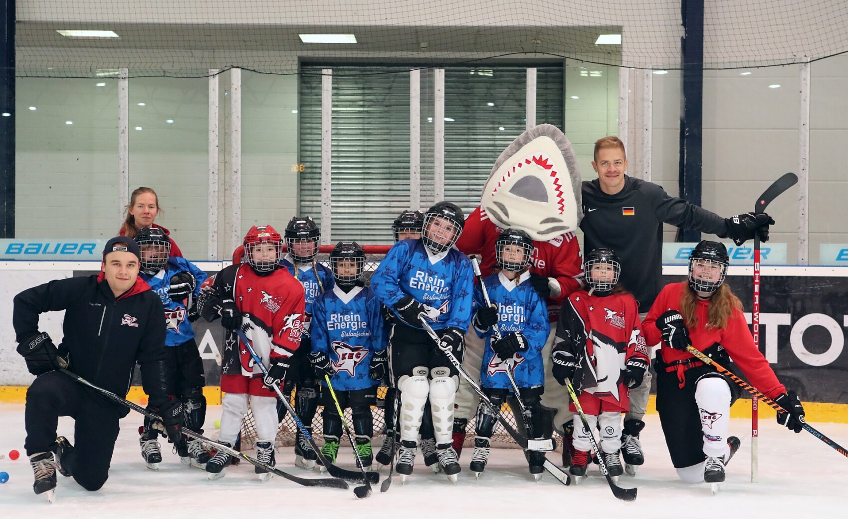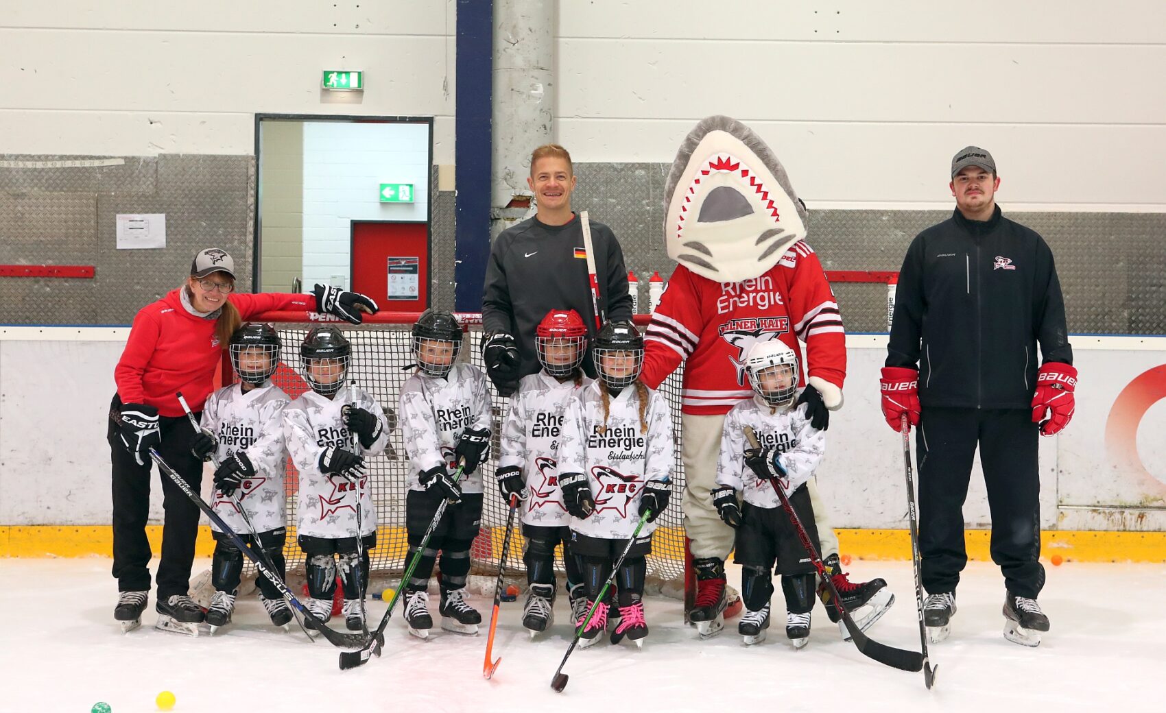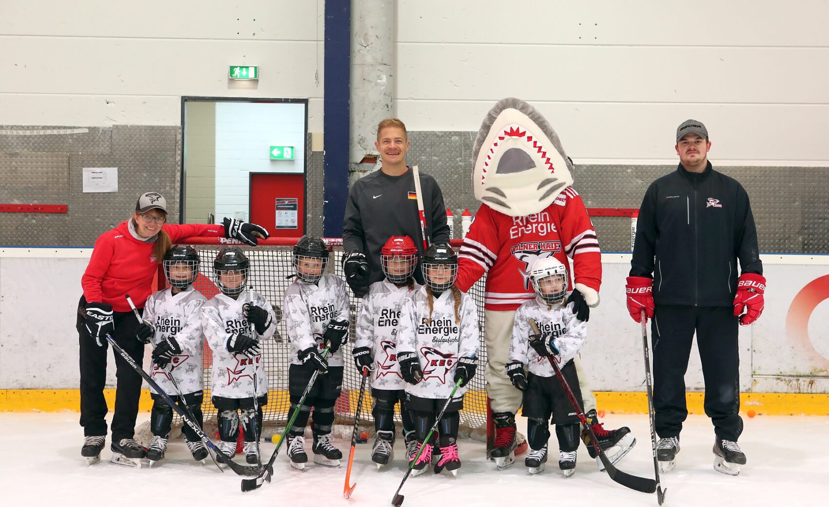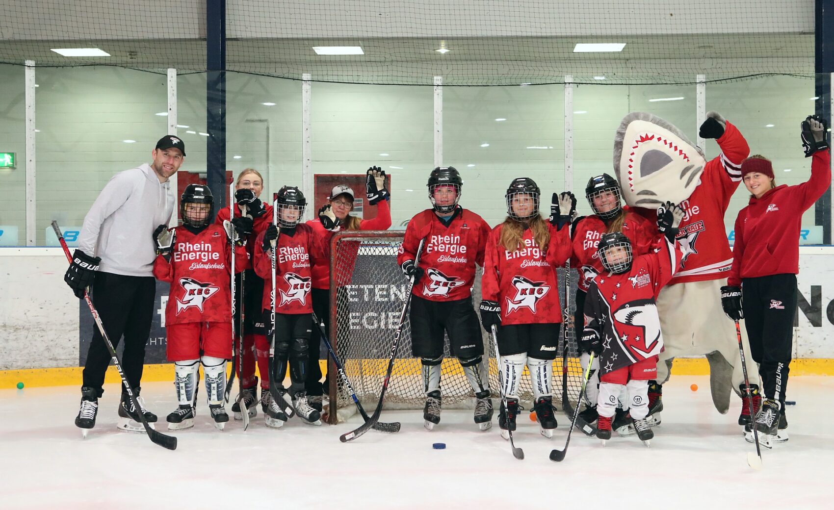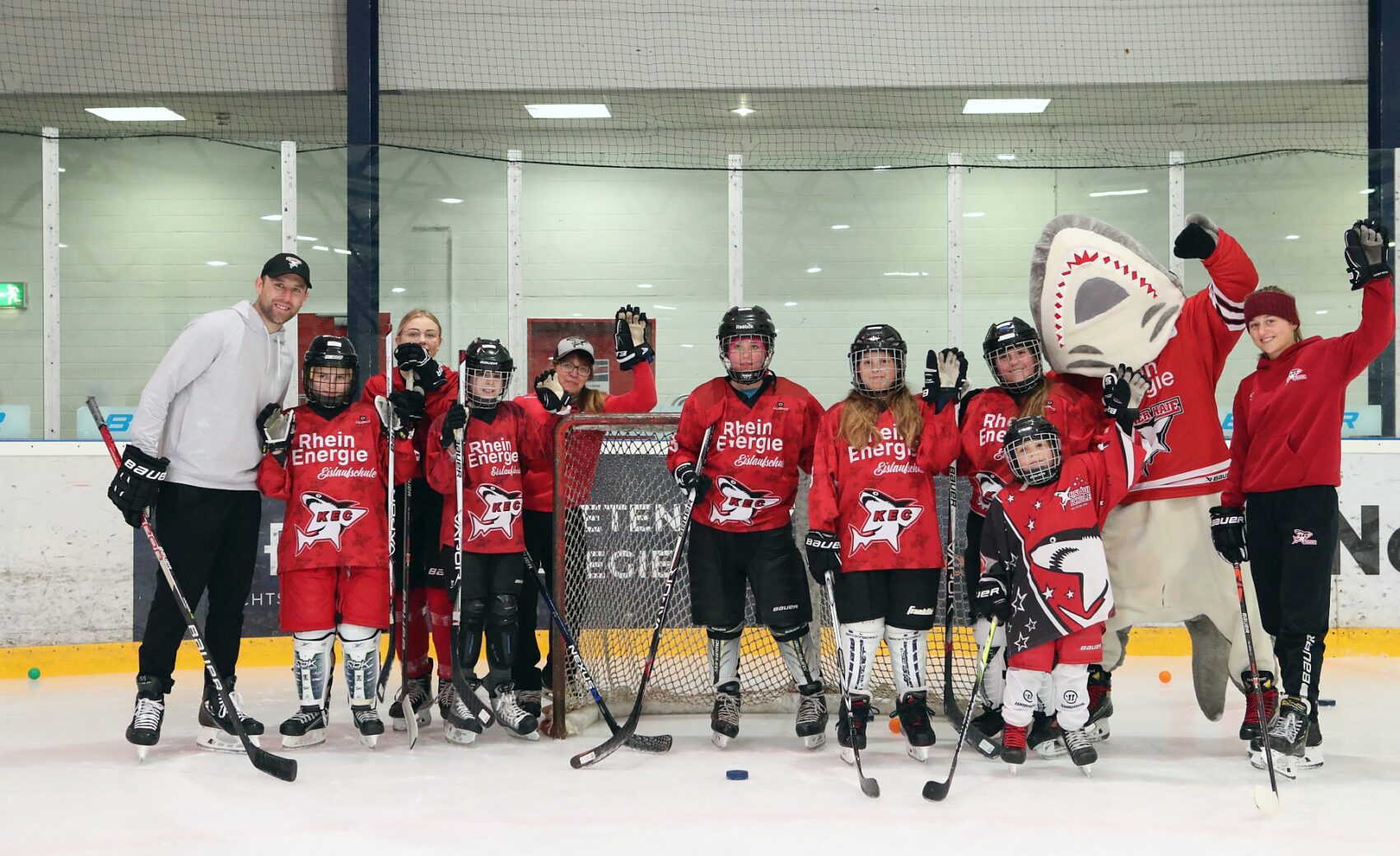 Betreut wurden sie dabei von Spielerinnen der KEC Frauen, Trainerinnen und Trainern der Junghaie sowie den Haie-Profis Moritz Müller, Ryan Stanton, David McIntyre, Mark Olver, Zach Sill und Haie-Maskottchen Sharky. Die Mädels hatten sichtlich Spaß und erlebten den schnellsten Mannschaftssport der Welt auf neue Art und Weise. Nach dem Schnuppertag gab es noch eine Überraschungstüte.