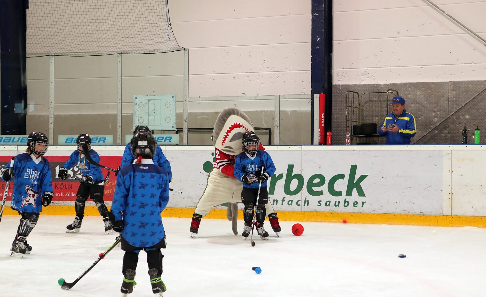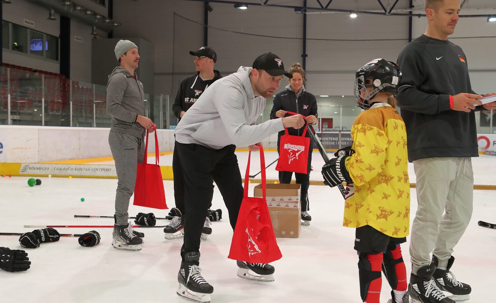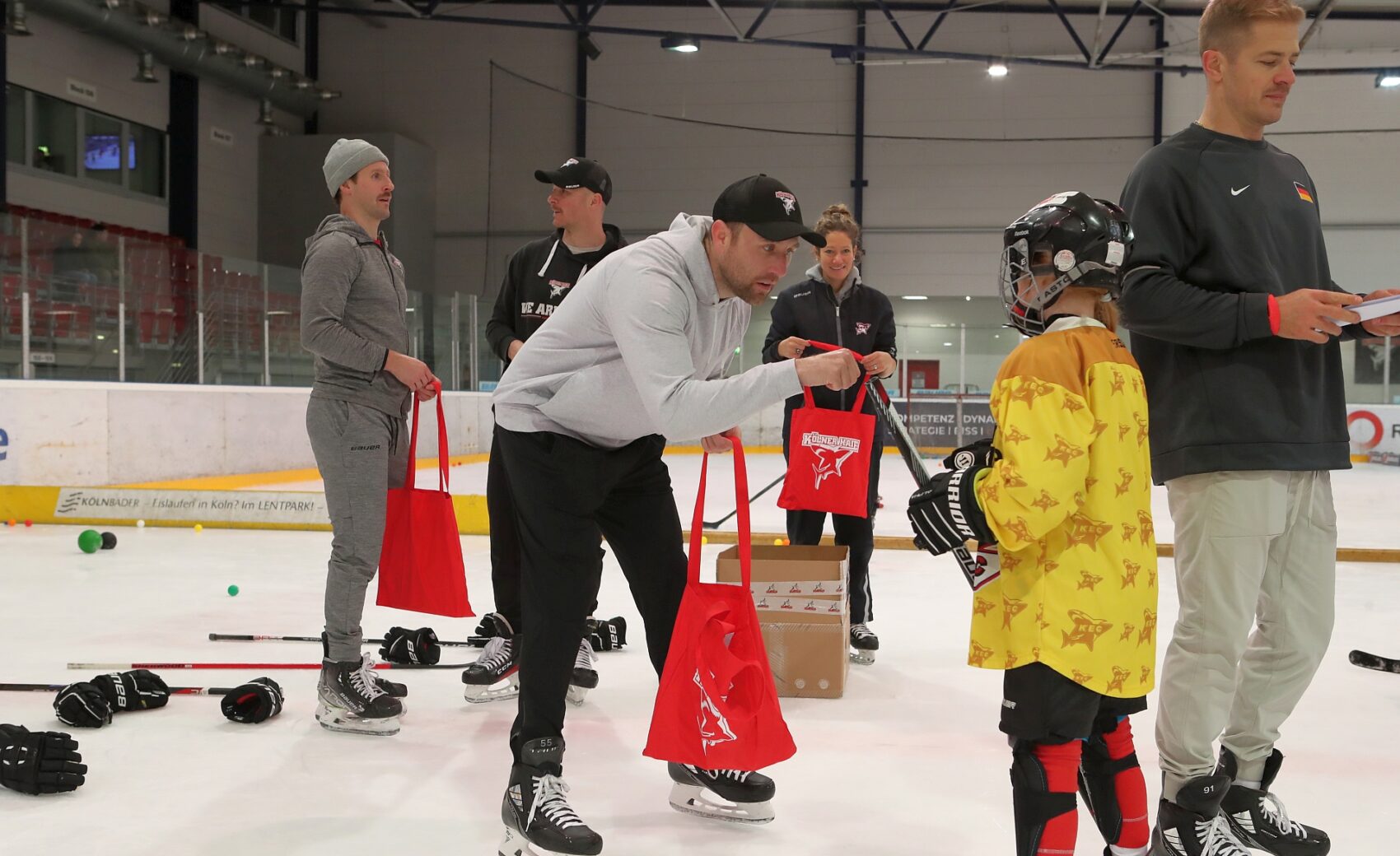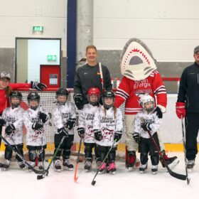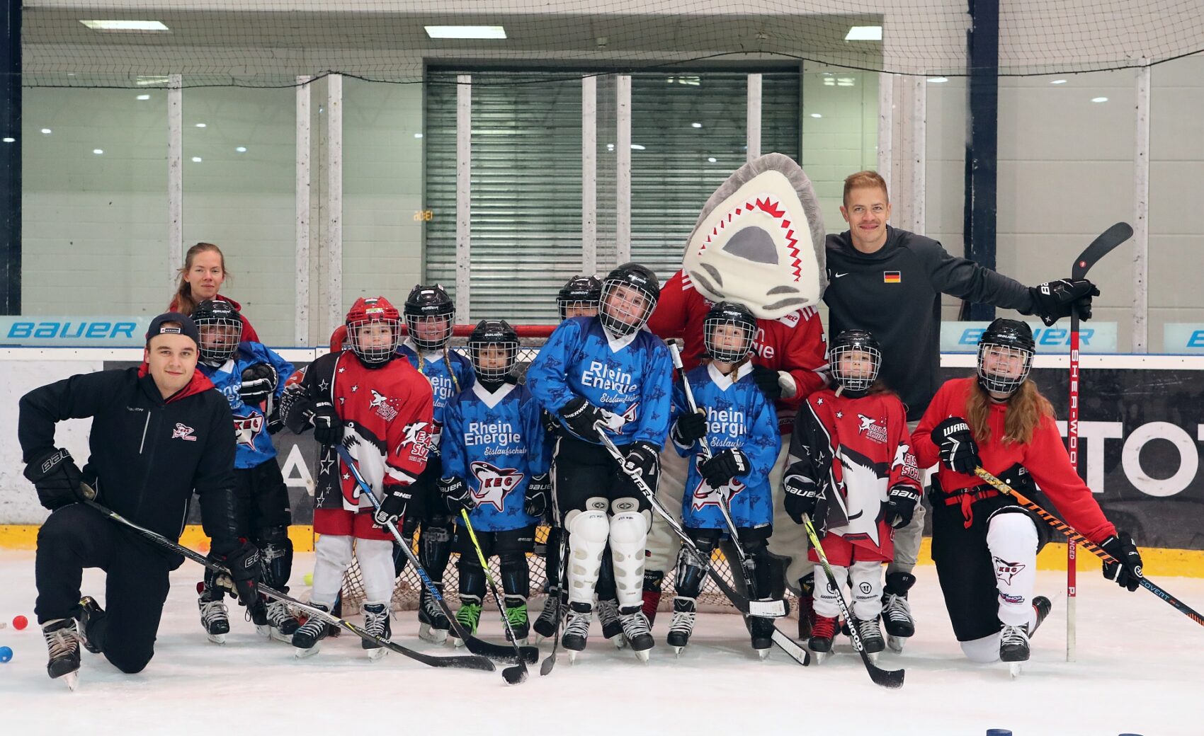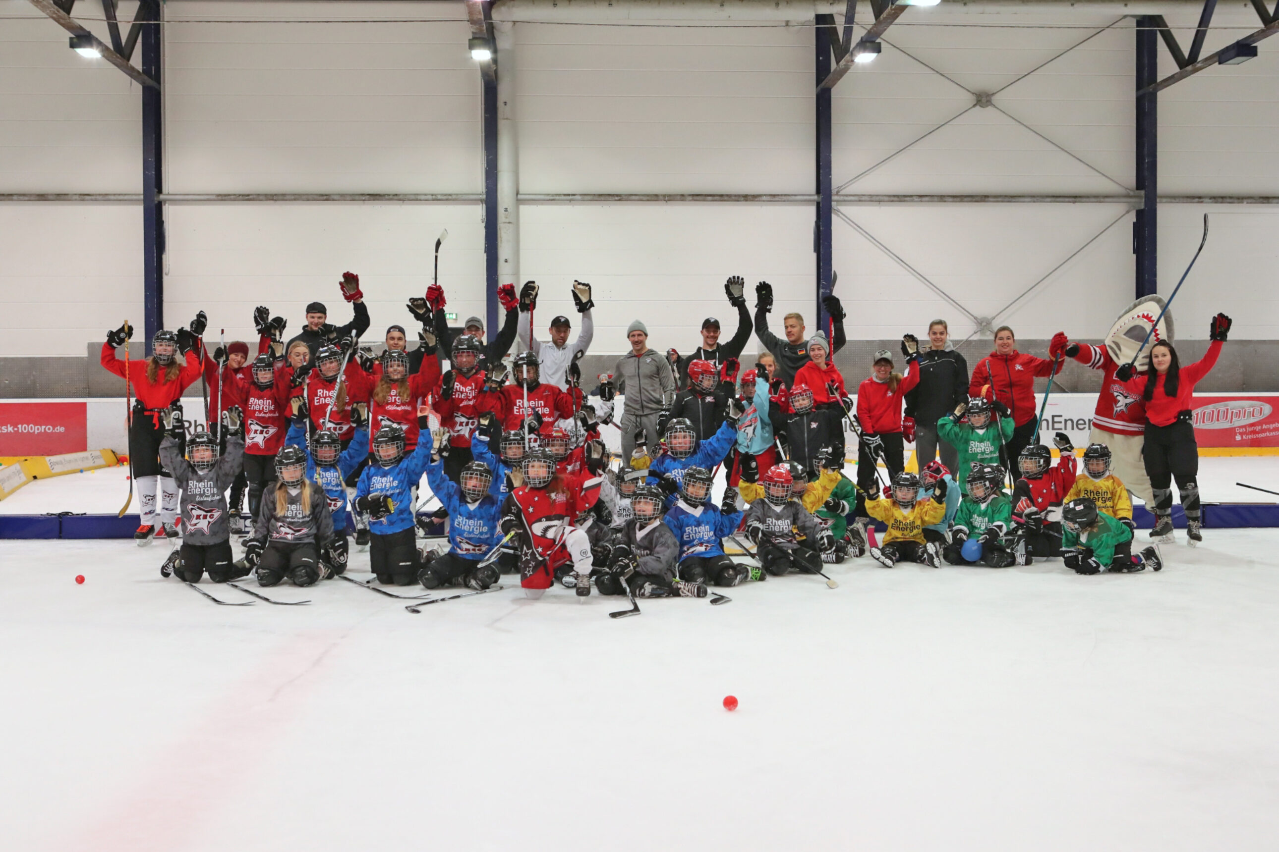 Betreut wurden sie dabei von Spielerinnen der KEC Frauen, Trainerinnen und Trainern der Junghaie sowie den Haie-Profis Moritz Müller, Ryan Stanton, David McIntyre, Mark Olver, Zach Sill und Haie-Maskottchen Sharky. Die Mädels hatten sichtlich Spaß und erlebten den schnellsten Mannschaftssport der Welt auf neue Art und Weise. Nach dem Schnuppertag gab es noch eine Überraschungstüte.
