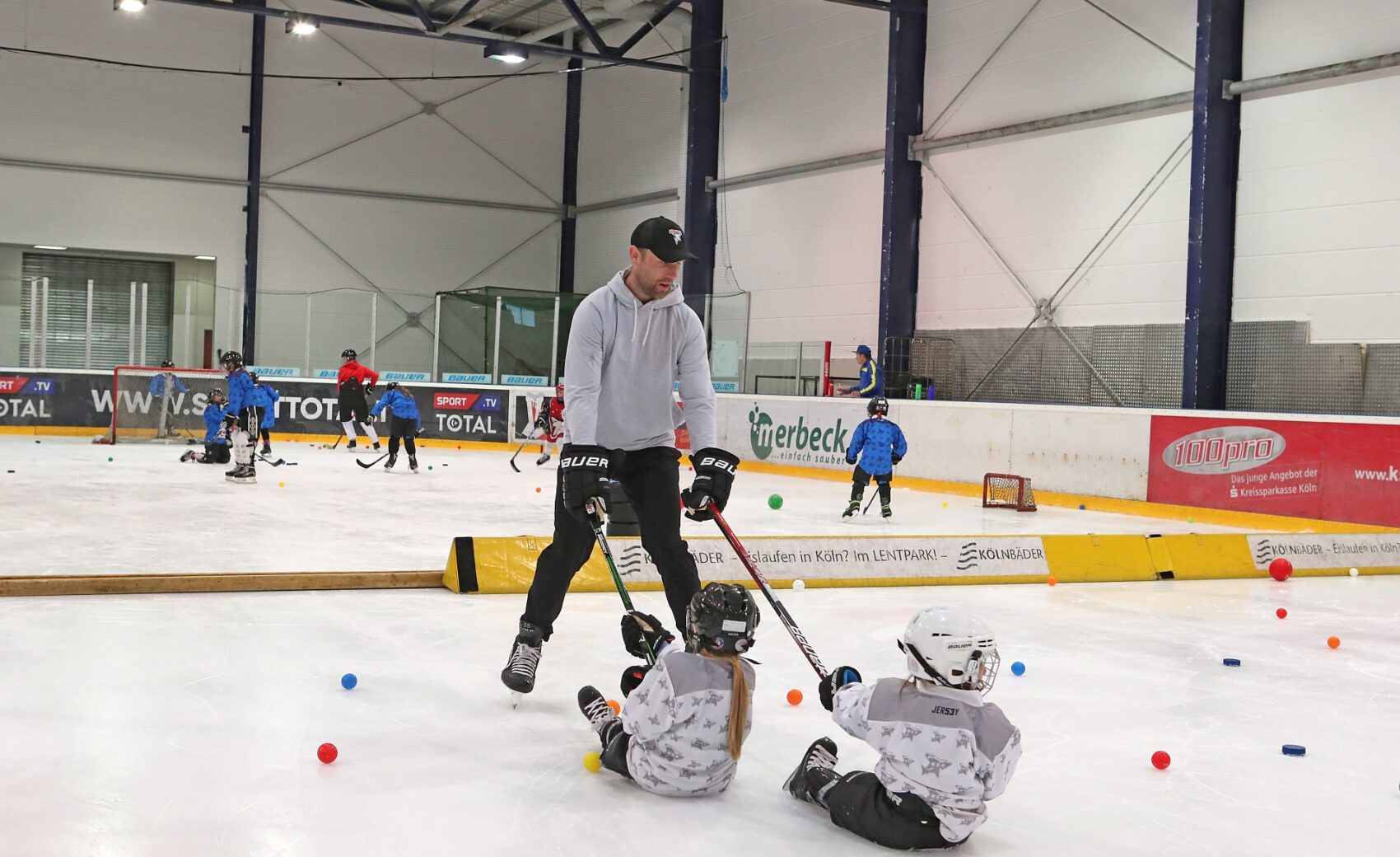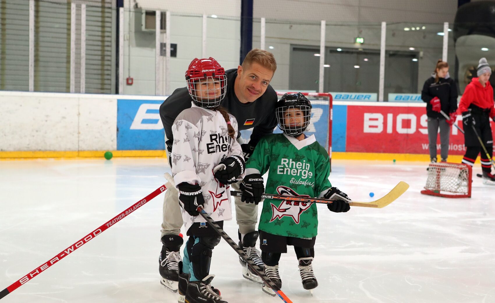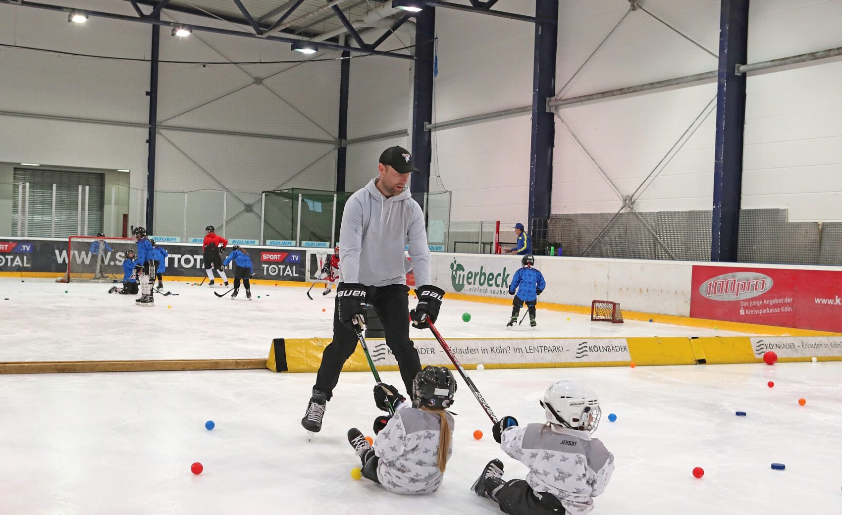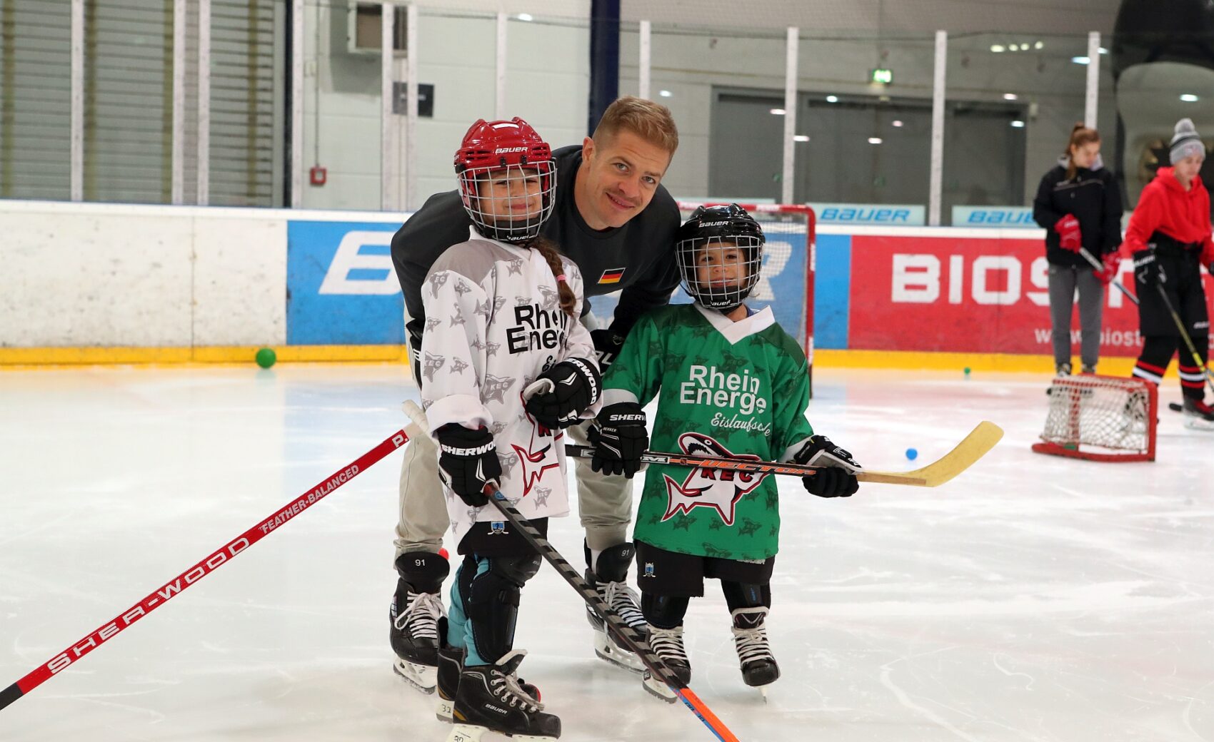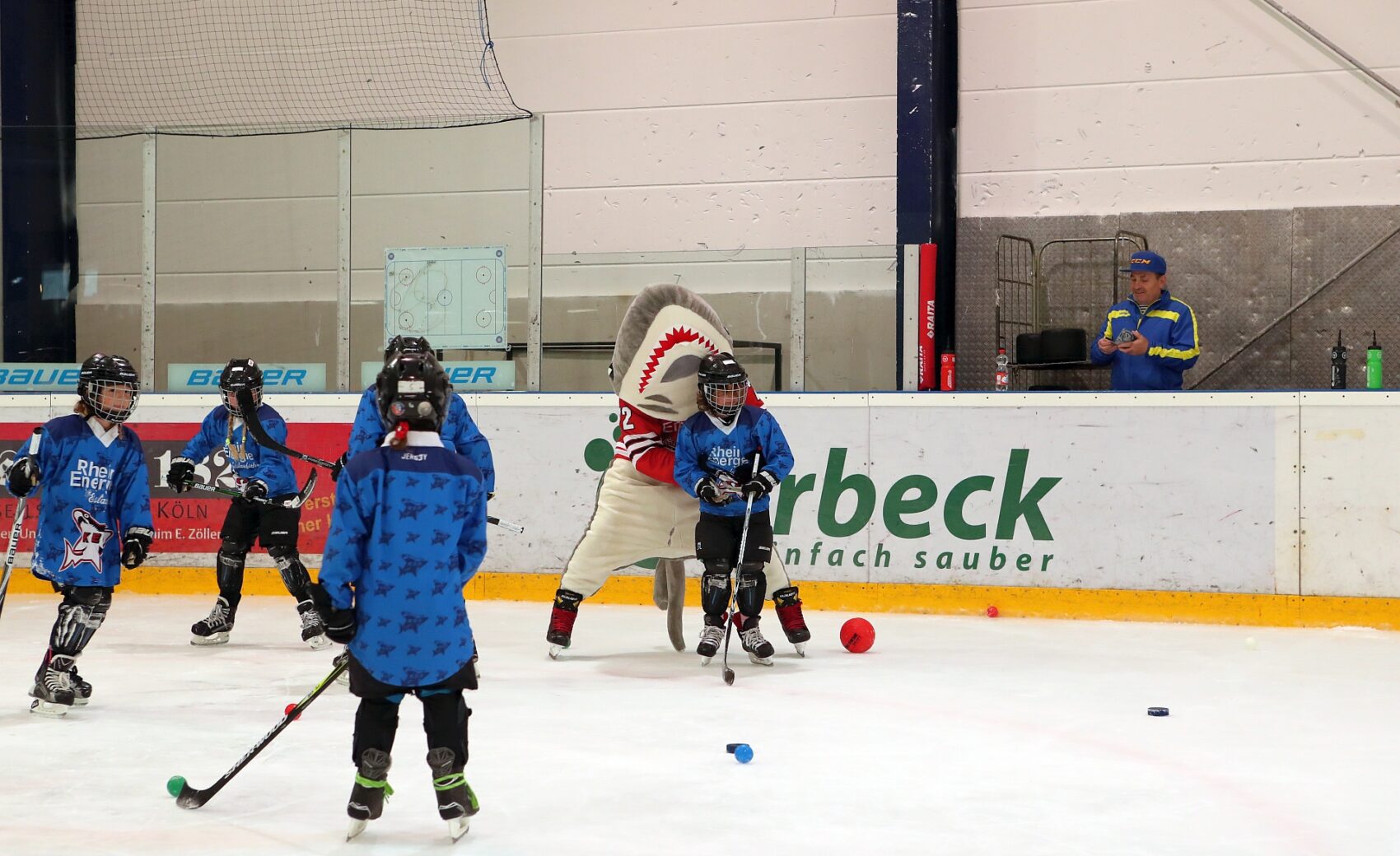 Betreut wurden sie dabei von Spielerinnen der KEC Frauen, Trainerinnen und Trainern der Junghaie sowie den Haie-Profis Moritz Müller, Ryan Stanton, David McIntyre, Mark Olver, Zach Sill und Haie-Maskottchen Sharky. Die Mädels hatten sichtlich Spaß und erlebten den schnellsten Mannschaftssport der Welt auf neue Art und Weise. Nach dem Schnuppertag gab es noch eine Überraschungstüte.