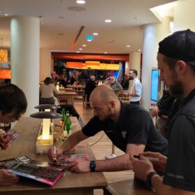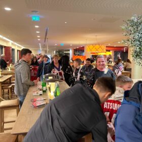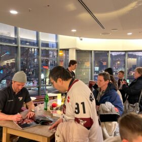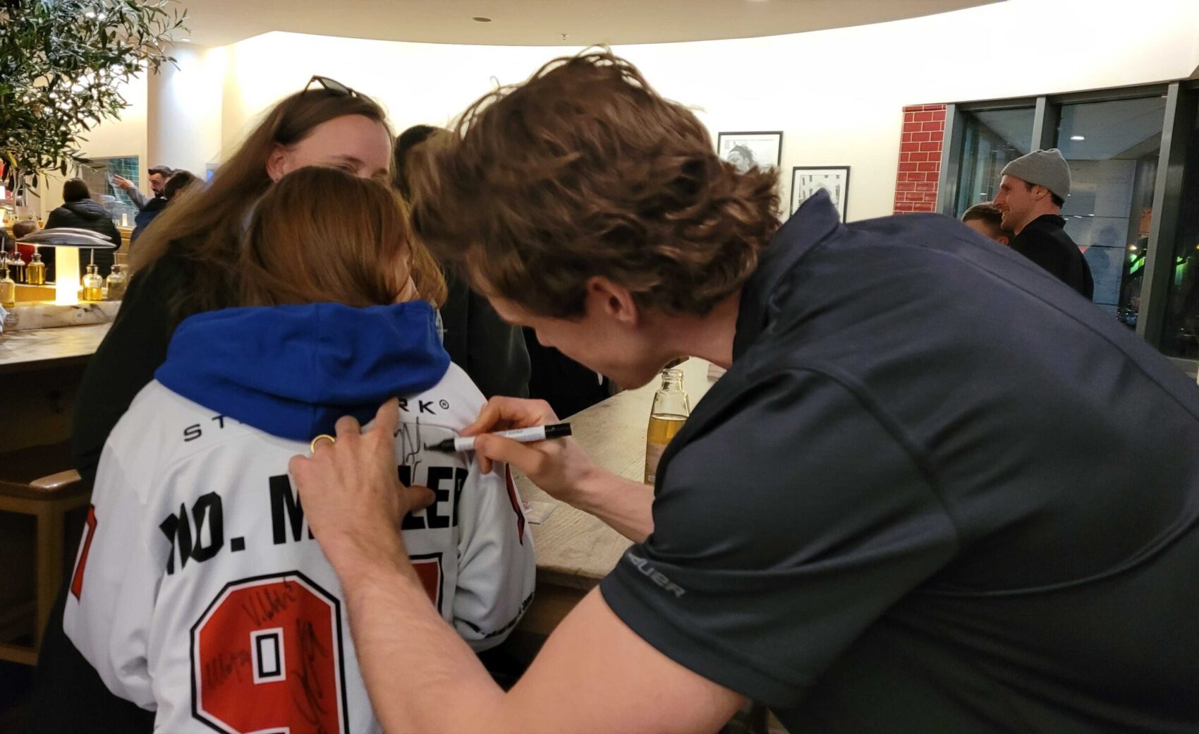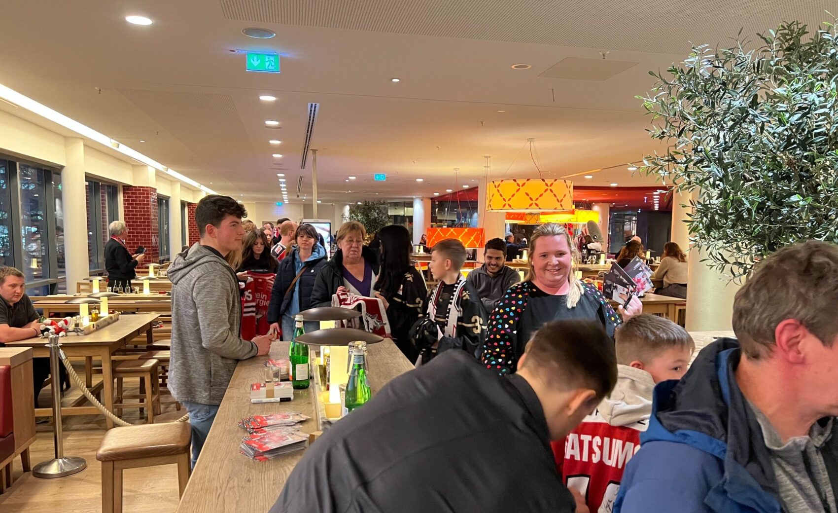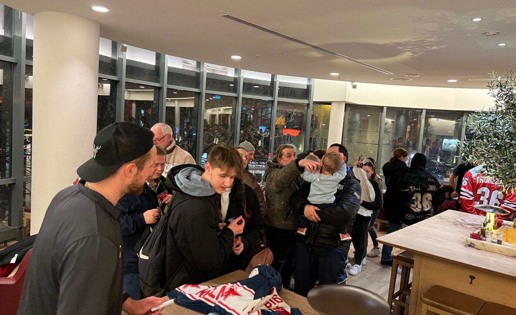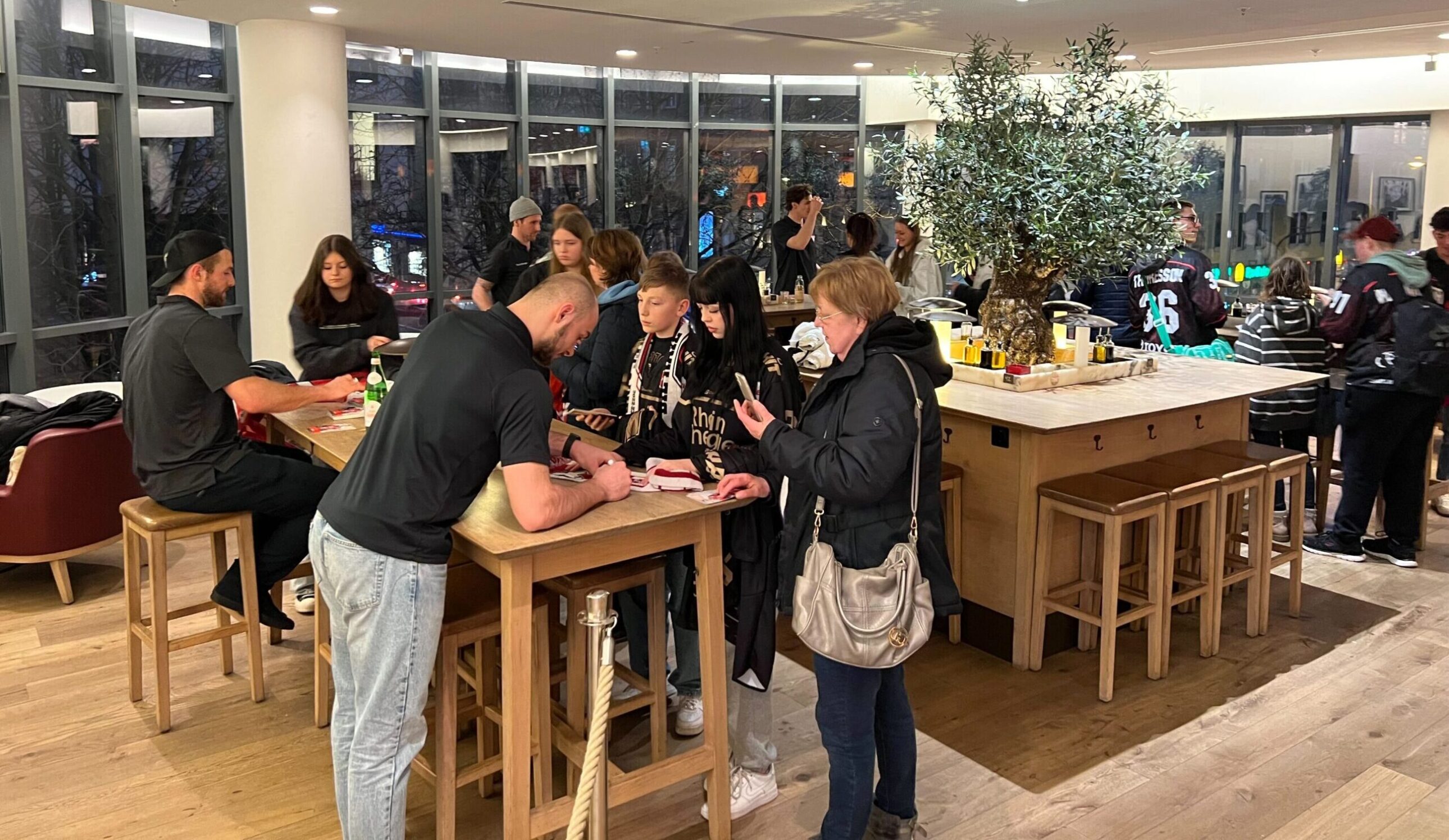 Volles Haus! Am gestrigen Mittwochabend luden wir gemeinsam mit unserem Partner Vapiano zur Autogrammstunde ins Vapiano Restaurant im Mediapark ein. Dem Aufruf folgten viele Haie-Fans, die im oberen Teil des Vapiano für großen Andrang sorgten.