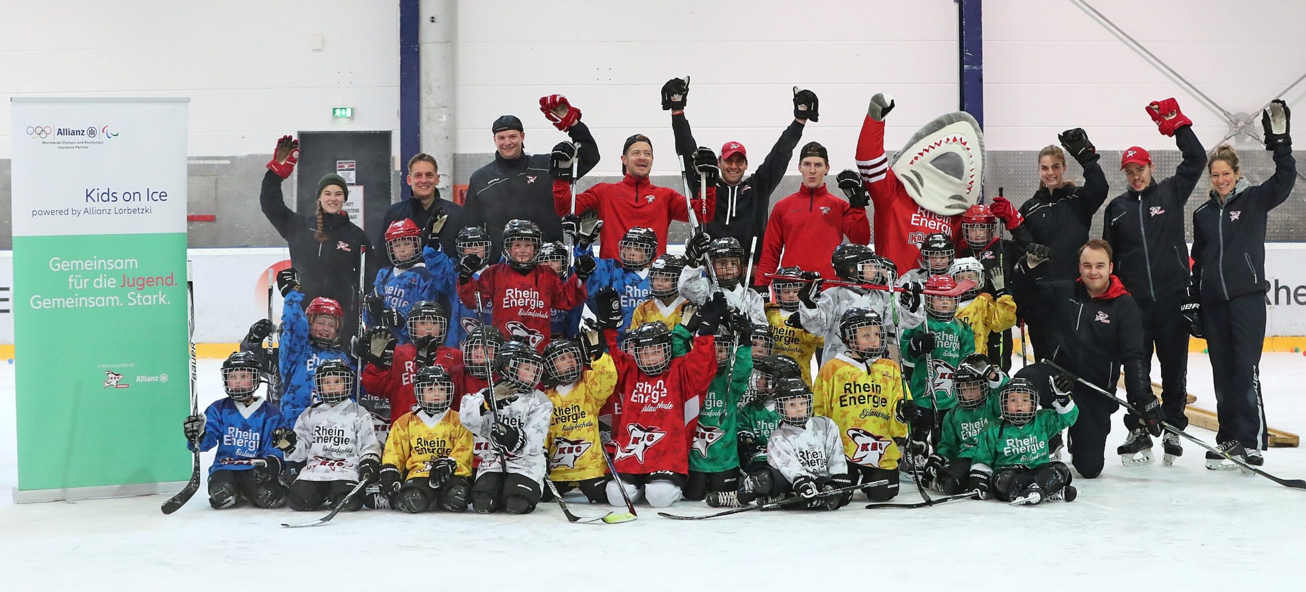 Am Samstag hieß es im Haie-Zentrum wieder „Kids on Ice“- powered by Allianz. 34 Kinder waren mit dabei und probierten sich an der schnellsten Mannschaftssportart der Welt.