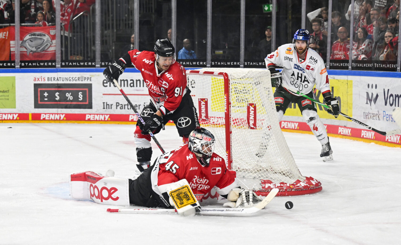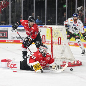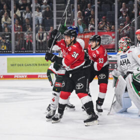 Zehn Minuten später zappelte das Hartgummi dann aber im Netz der Gäste – Maxi Kammerer schlich sich in eine gute Position, wurde mit einem Anspiel von Louis-Marc Aubry belohnt und lie sich die Chance zum Ausgleich mit einem One-Timer in den Winkel nicht nehmen (54.). Beinahe drehten wir das Spiel noch komplett, doch der Schuss von Brady Austin kurz vor Schluss (59.) landete am – und nicht im – Netz.