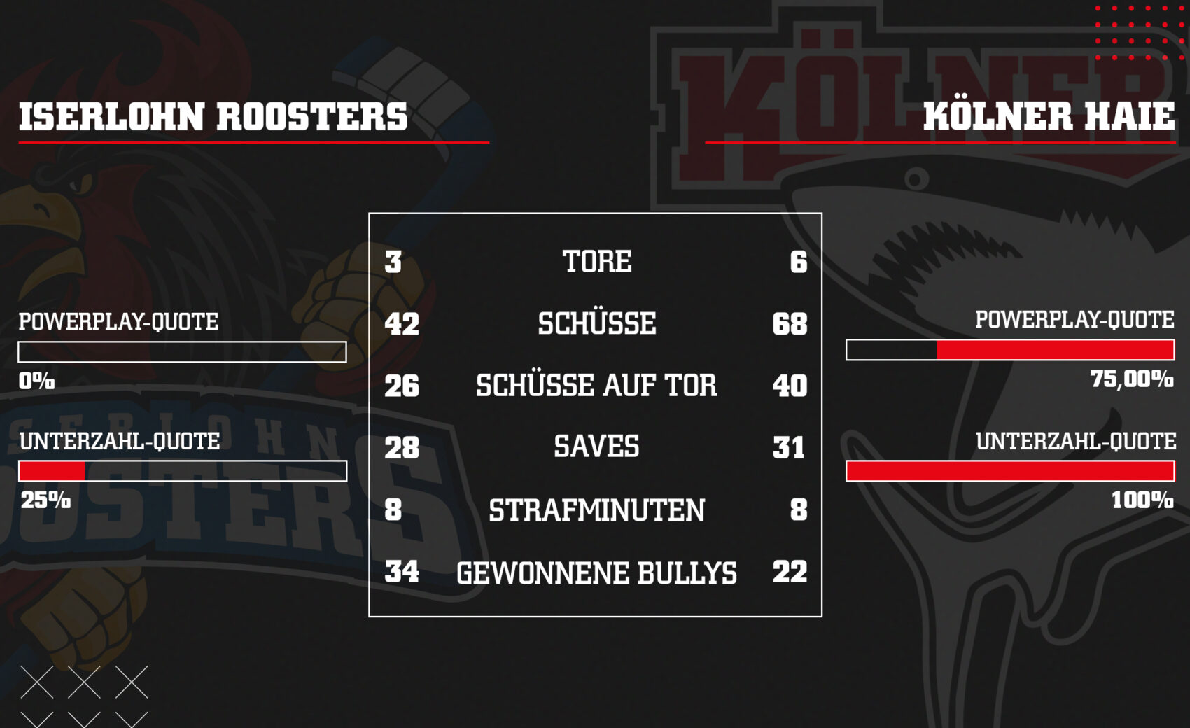 Zum Ende hin wurde es nochmals etwas wilder, da die Roosters alles nach vorne warfen und unter anderem ihren Torhüter Kevin Reich für einen sechsten Feldspieler vom Eis nahmen. Die Haie nutzen dies zu zwei Treffern in den verwaisten Iserlohner Kasten – der Anschlusstreffer des IEC kam derweil zu spät. So fuhr unsere Mannschaft im fünften Saisonspiel den vierten Sieg ein.