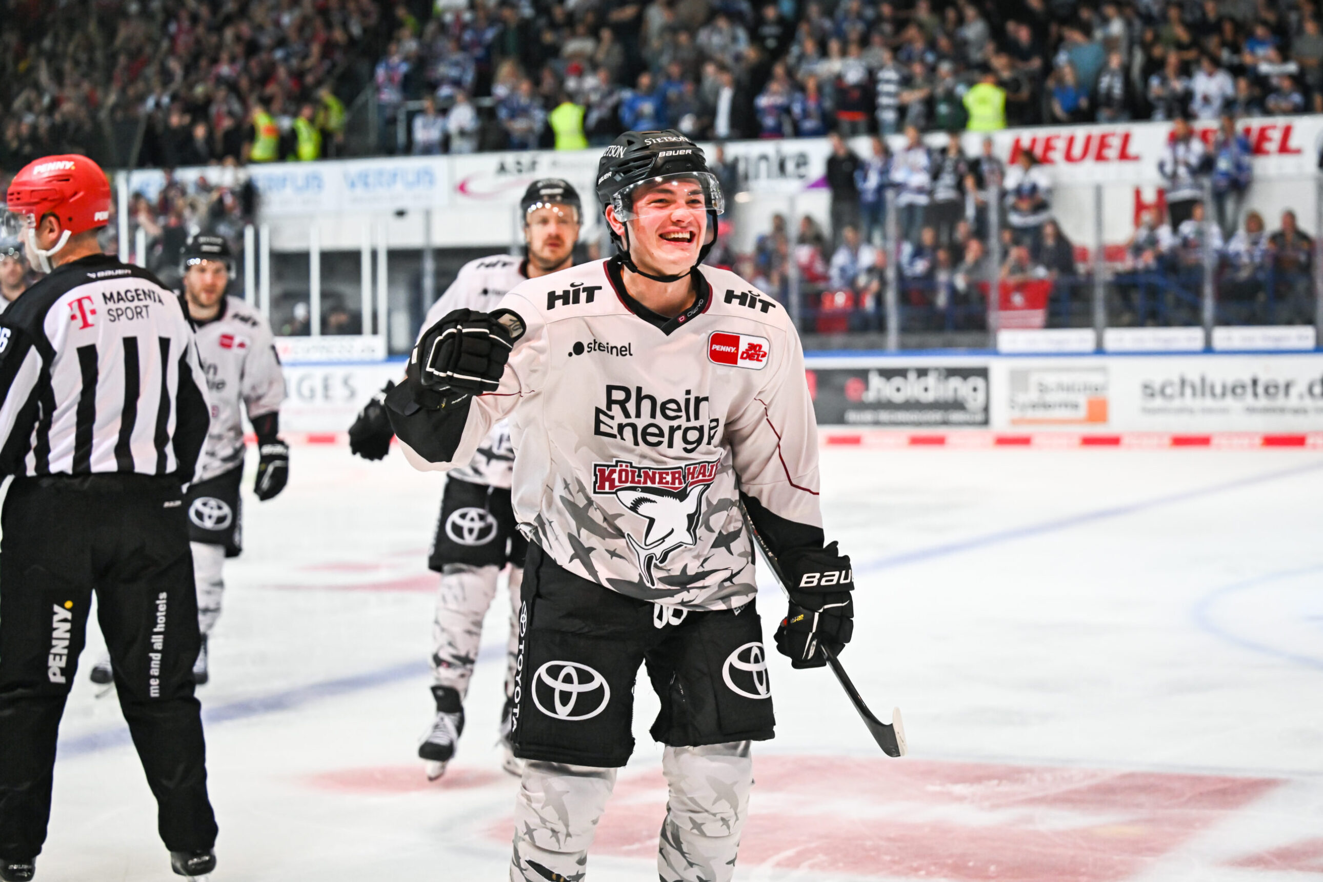 - Premiere: Justin Schütz erzielte in Iserlohn seinen ersten Doppelpack im Haie-Trikot.