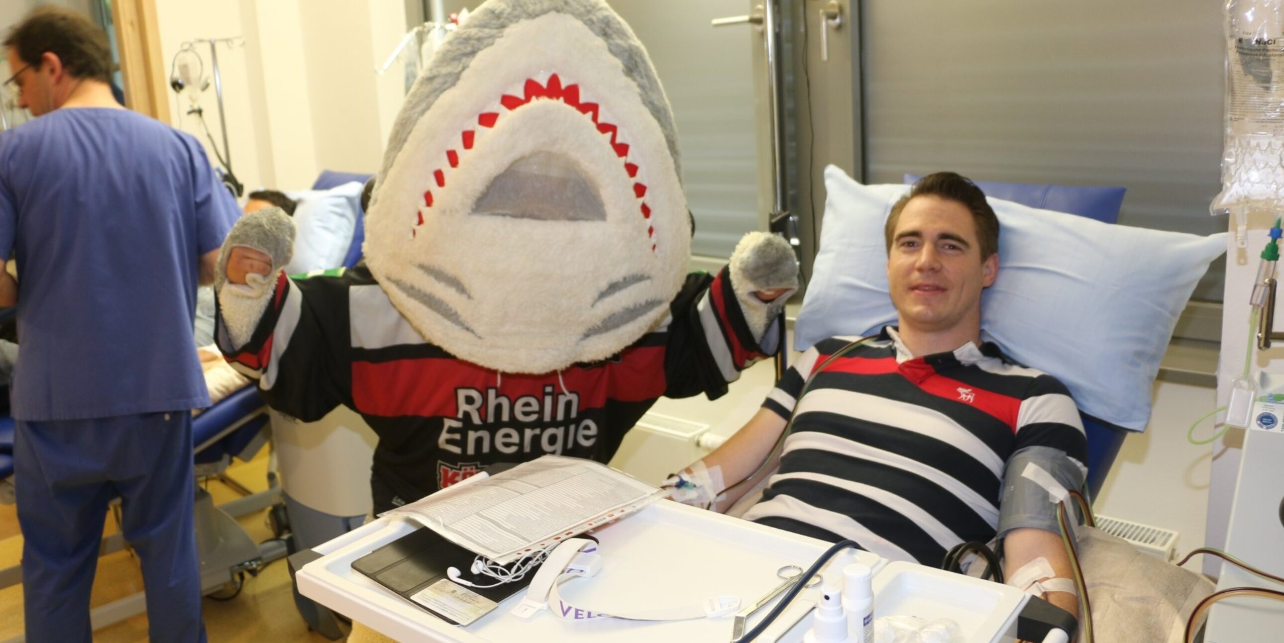 Alexander Grothues war die Entscheidung für eine Spende sofort klar: „Der Aufwand für eine Stammzellspende war für mich wirklich überschaubar. Das Gefühl, damit einem Menschen eine echte Lebenschance ermöglicht zu haben, ist überwältigend. Ich würde mir wünschen, dass sich noch mehr Menschen bei der DKMS registrieren – Leben retten kann so einfach sein.“ Bei seinem Entnahmetermin erhielt Alexander Grothues dann auch noch überraschenden Besuch: Sharky, das Maskottchen der Kölner Haie, schaute in der Entnahmeklinik vorbei und verkürzte dem Haie-Fan so die Zeit während der Entnahme.