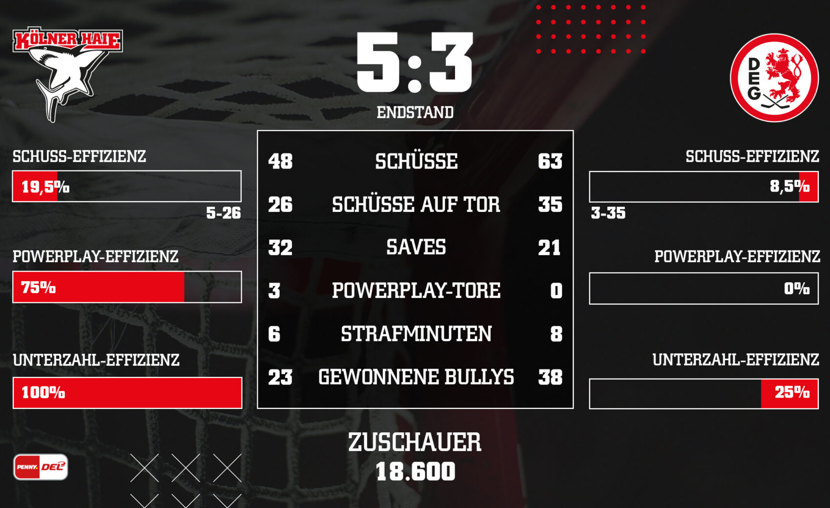 - Die DEG zog insgesamt 63-mal ab, wir „nur“ 48-mal