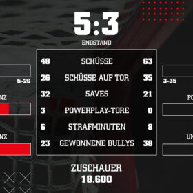 1:0 Marco Münzenberger (Kammerer) 10. Minute; 1:1 Kyle Cumiskey (Gogulla, Rymsha) 21. Minute; 2:1 Parker Tuomie (Powerplay/Kammerer, Schütz) 26. Minute; 2:2 Laurin Braun 37. Minute; 3:2 Joshua Currie (Powerplay/MacLeod) 39. Minute; 4:2 Justin Schütz (Powerplay/Aubry, Vittasmäki) 47. Minute; 4:3 Brendan O’Donnell (Cumiskey, Angle) 59. Minute; 5:3 Justin Schütz (Tyrväinen) 60. Minute