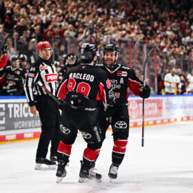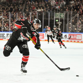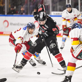 Nach 47 Minuten konnten wir die Führung an diesem Sonntagnachmittag das erste Mal auf zwei Tore ausbauen – Schütz stand im Slot am zweiten Pfosten goldrichtig und markierte, erneut in Überzahl, das 4:2. Doch die Düsseldorfer, die im Kampf um den Klassenerhalt in der PENNY DEL jeden Punkt brauchen, steckten nicht auf. Brendan O’Donnell setzte einen Gewaltschuss in der 53. Minute knapp daneben. Sechs Minuten später macht er es dann besser – nachdem Juhani Tyrväinen wenige Sekunden zuvor das „Empty Net-Goal“ verpasst hatte (59.), markierte O’Donnell kurz vor Schluss den Düsseldorfer Anschlusstreffer (59.). Das letzte Wort in dieser unterhaltsamen Partie hatte Justin Schütz mit seinem Treffer ins leere Tor zum 5:3 (60.).